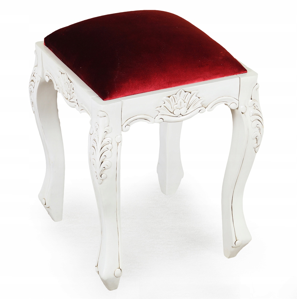 Предметом аукціону є новий стильний табурет. Меблі виготовлені з добірного масиву червоного дерева найвищої якості, пофарбовані білою фарбою. Ця модель характеризується ретельною, трудомісткою різьбою, виконаною з максимальною увагою до деталей найкращими майстрами.