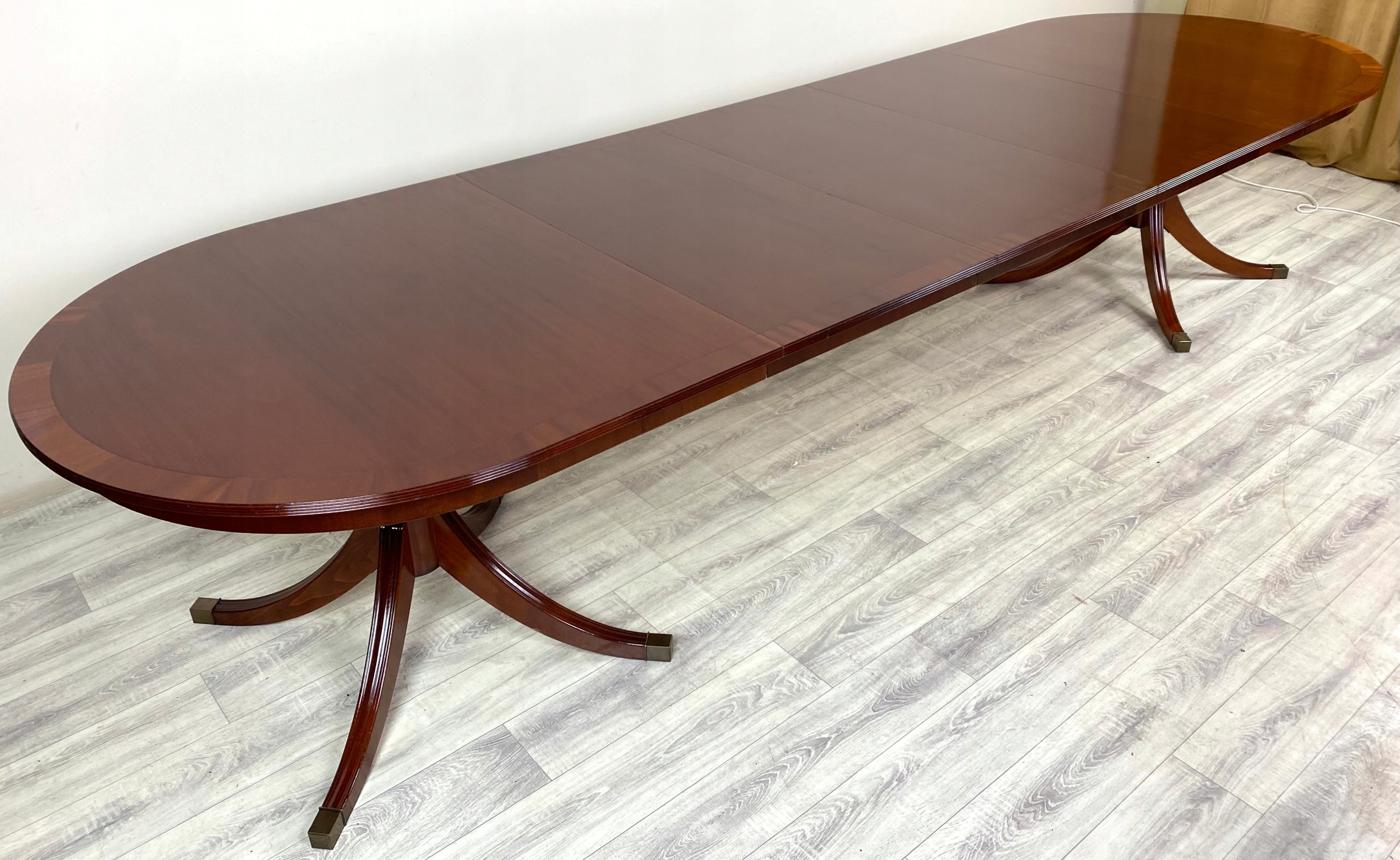СТИЛЬНИЙ РОЗКЛАДНИЙ АНГЛІЙСЬКИЙ ОВАЛЬНИЙ СТІЛ ДЛЯ ЇДАЛЬНІ 3,7М ЧЕРВОНЕ ДЕРЕВО EA3