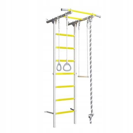 Гімнастична драбина наступна-6-це класичний спортивний набір для дітей 3 роки. Обидві драбини вправ призначені для дорослих. Набір із європейським сертифікатом безпеки. Профілі конструкції сталі досягають міцності 200 кг при виконанні заводських випробувань.