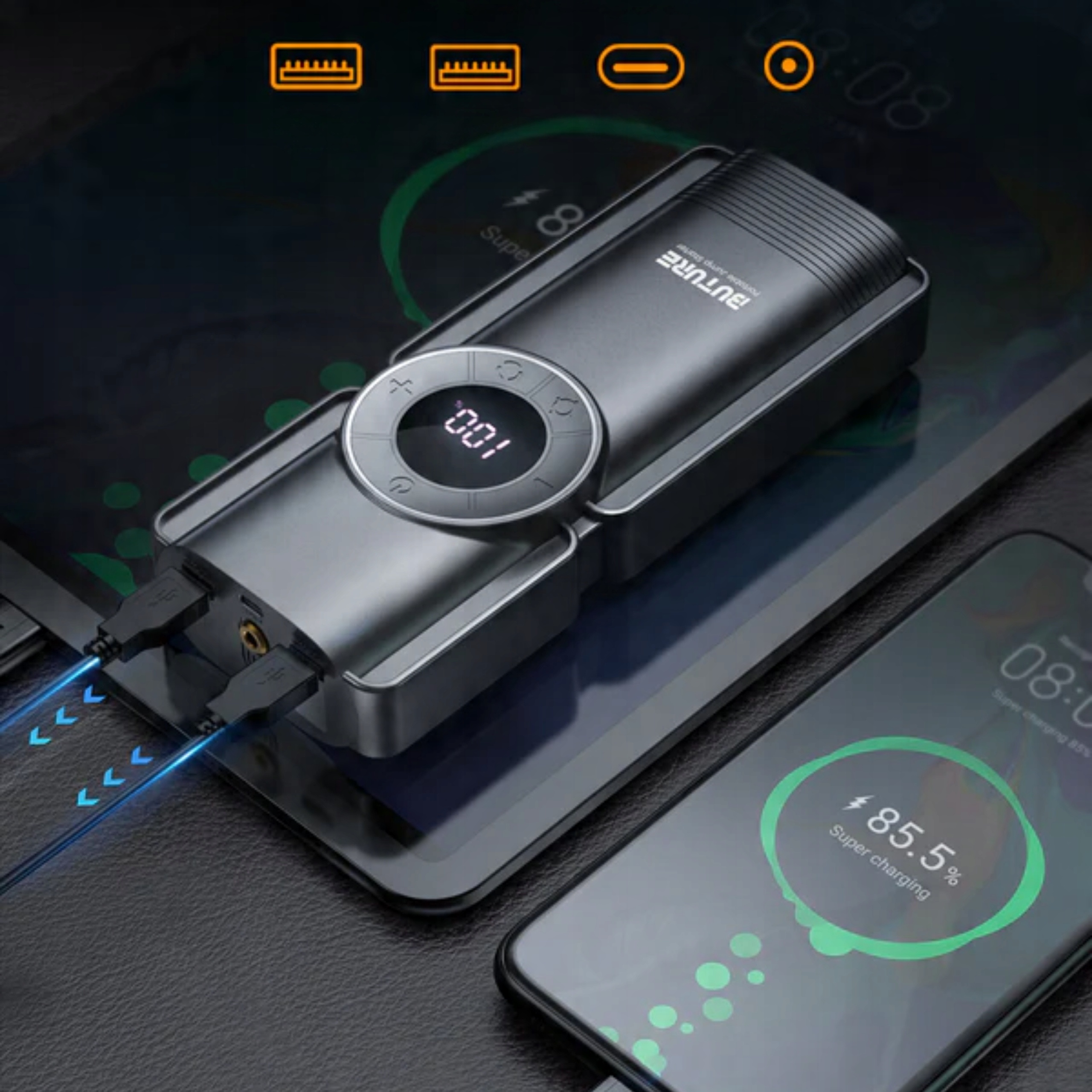 ✅ Пристрій має вбудований компресор повітря, завдяки якому ми можемо надути автомобіль, велосипед, шини мотоциклів, матраци, кульки, в будь -якому місці та часу.