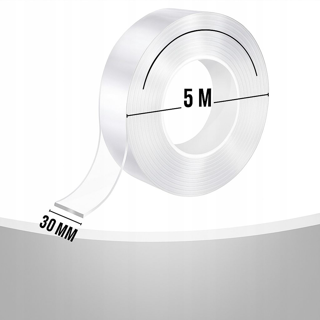 🧲 подвійна нано -стрічка 5м × 30 мм - прозора, багаторазова