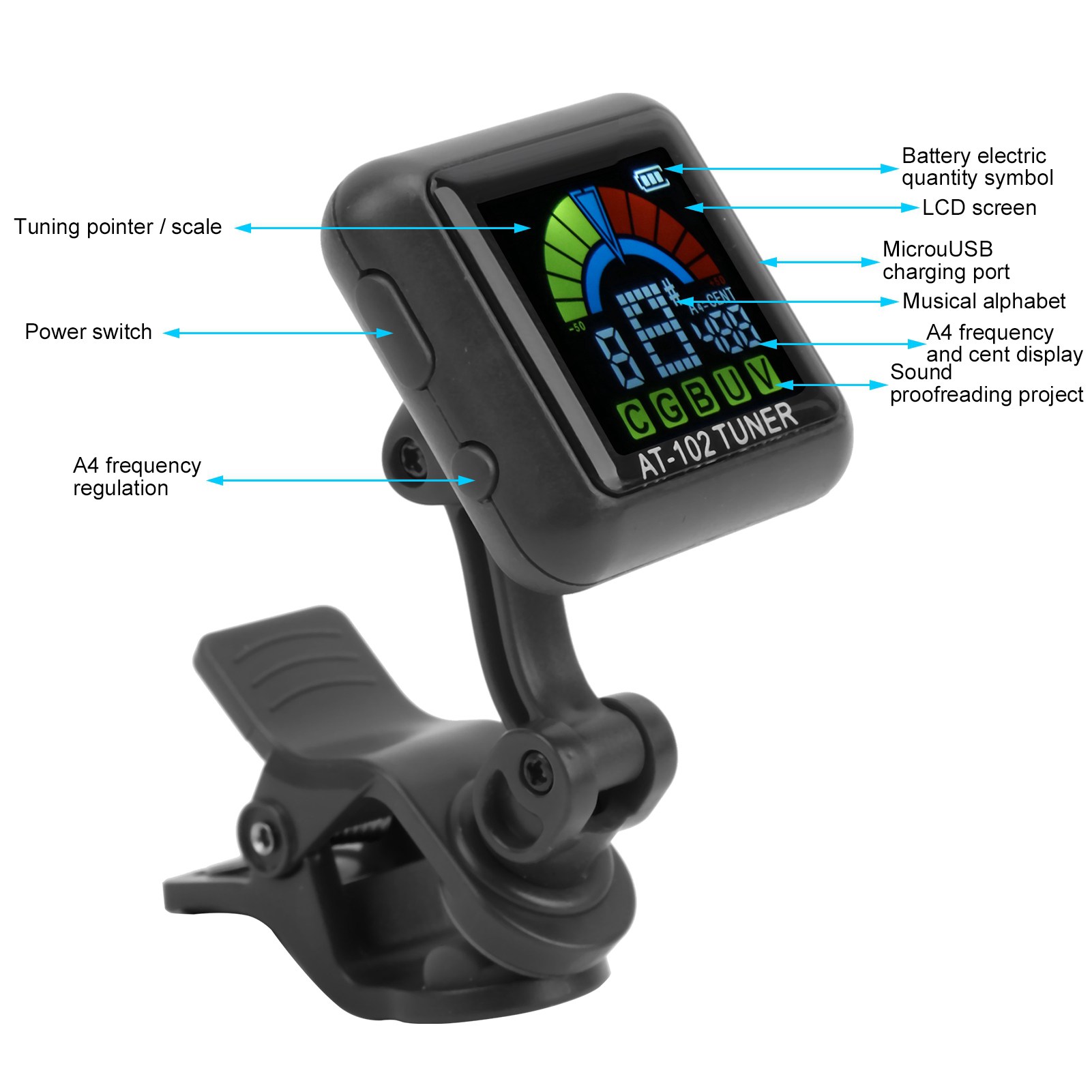 ✅cha: ✔1. Цей компактний тюнер з кліпом підходить для напівтонів / гітари / бас / укулеле / скрипки.