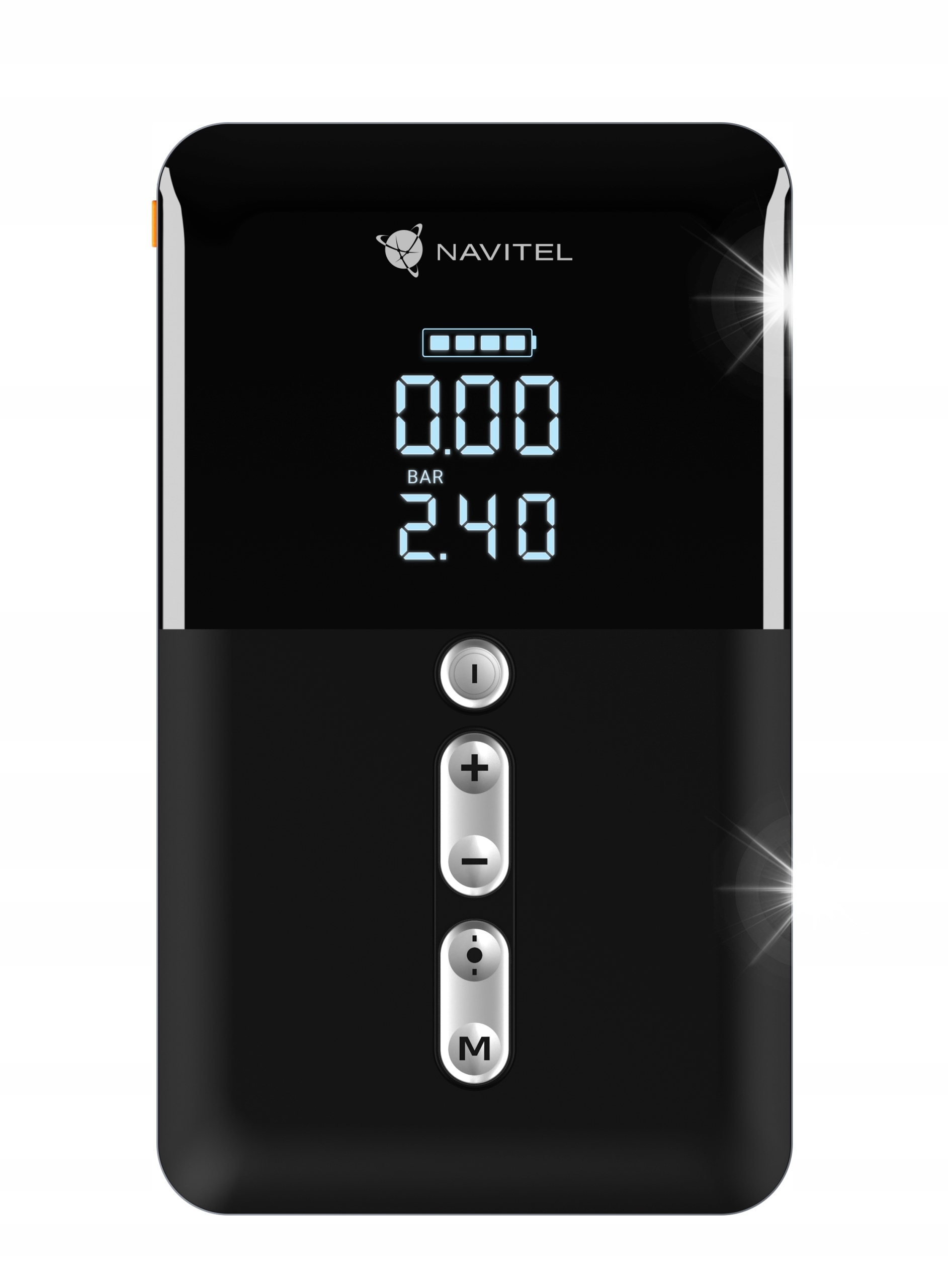 Налаштування, режими та ліхтарик керуються за допомогою п'яти кнопок на передній частині компресора. Пристрій також має 2 виходи USB-A 5V/2A, що дозволяє заряджати смартфони, планшети, навушники та інші портативні пристрої. Компресор живиться від акумулятора потужністю 10 000 мАг або якщо акумулятор вичерпаний, він може бути підключений до 12-дюймової розетки автомобіля з USB-C. дюни.