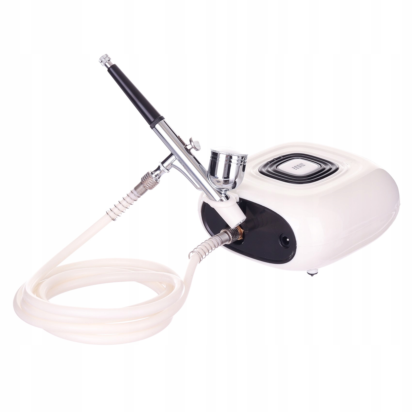 Ідеальний набір для професійних салонів краси. Також підходить для розпису моделей, тортів і тортів. Аерограф адаптований до різних типів фарб. Він стійкий до розчинників. Компресор може працювати в трьох режимах продуктивності повітря. Після включення загоряється перемикач і один діод, для збільшення кількості повітря достатньо натиснути перемикач ще раз. Компресор вимикається утриманням кнопки. Компресор дуже тихий.