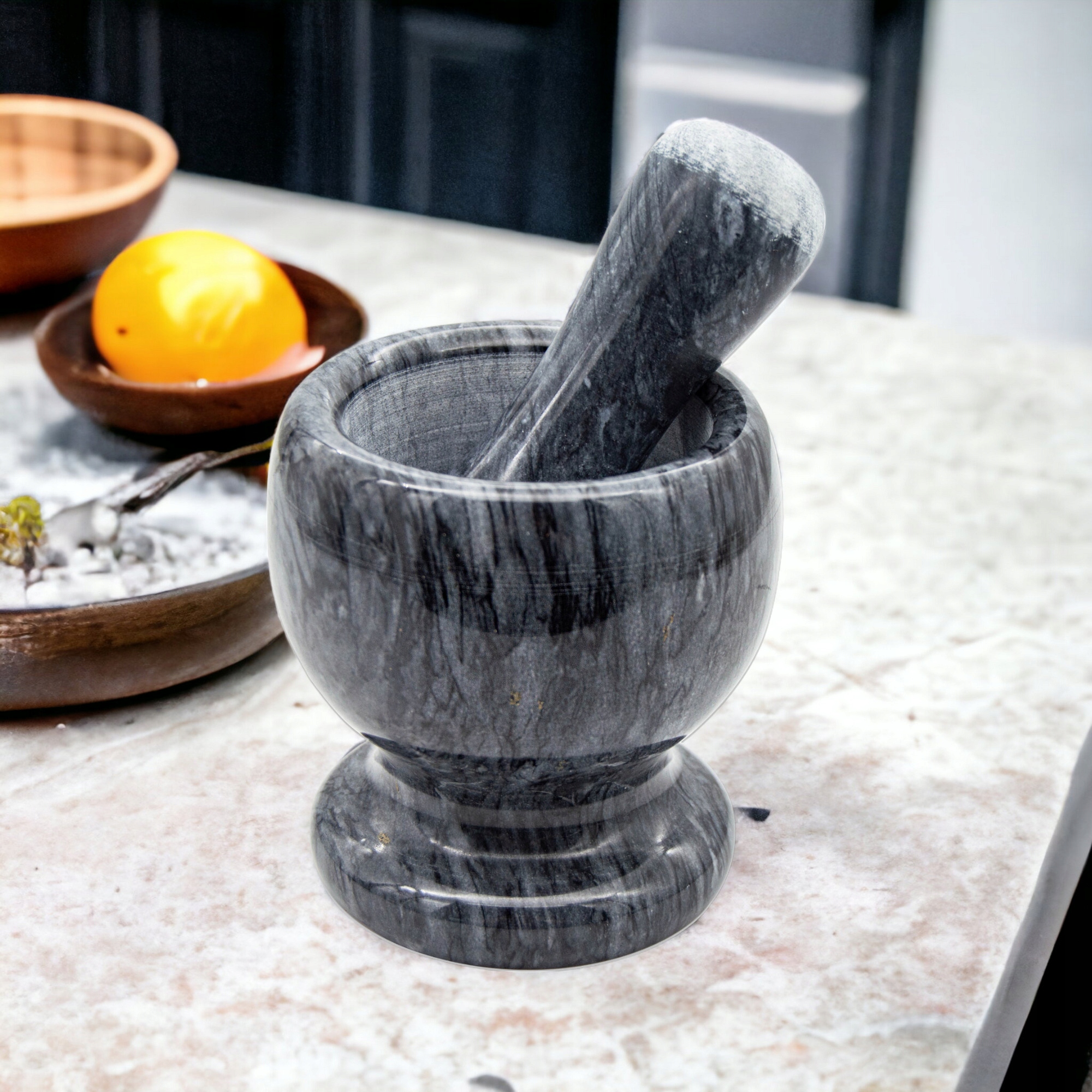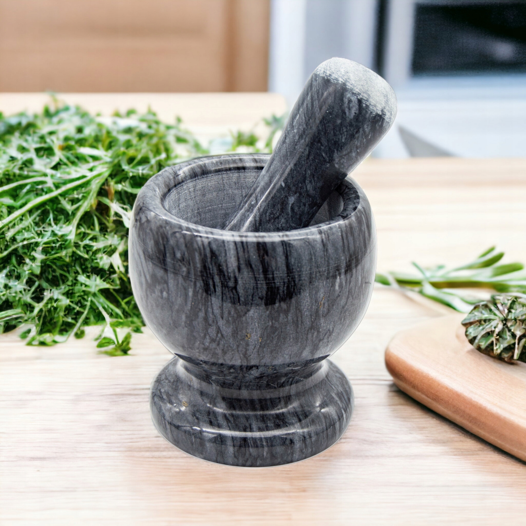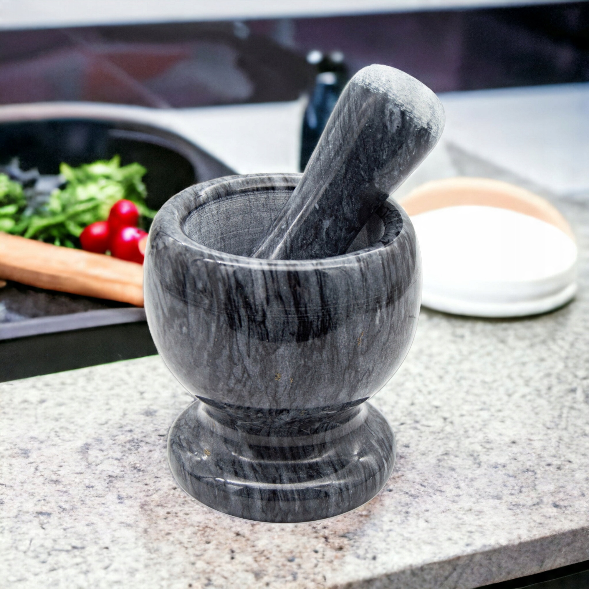 Ступка з мармурового каменю з товкачиком для розтирання та розтирання