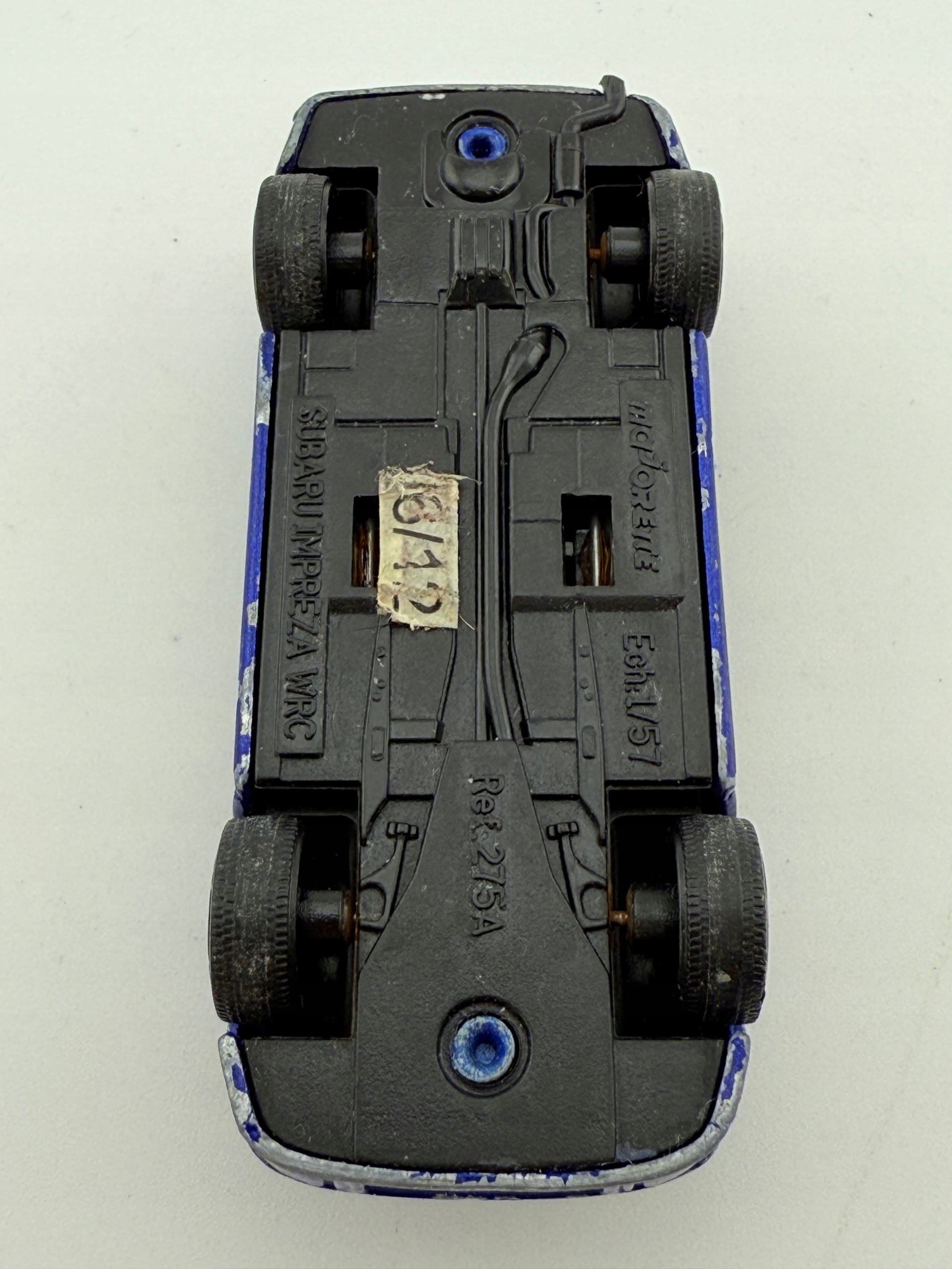 Бренд: Majorette • Модель: Subaru Impreza WRC • Виробник: Majorette • Масштаб: 1:57 • Умова: Використовується • Матеріал: метал + пластик • Довжина (мм): 70 • Кольори: синій з жовтими та білими візерунками • Додавання: Спойлер, унікальна графіка ралі • Номер каталогу: 275A