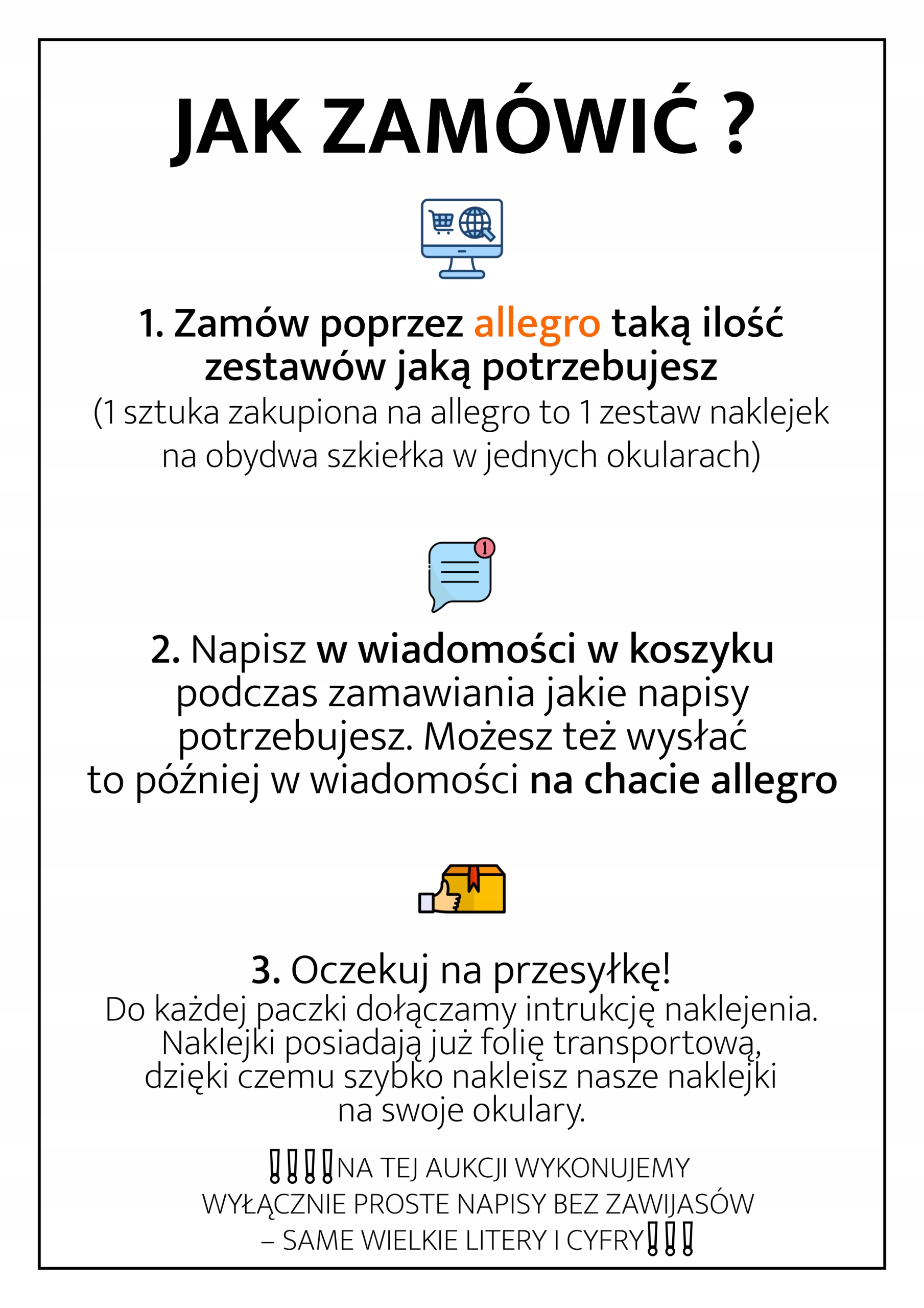 Після покупки напишіть нам повідомлення про Allegro зі списком текстів, які потрібно зробити, та вибраним шрифтом.