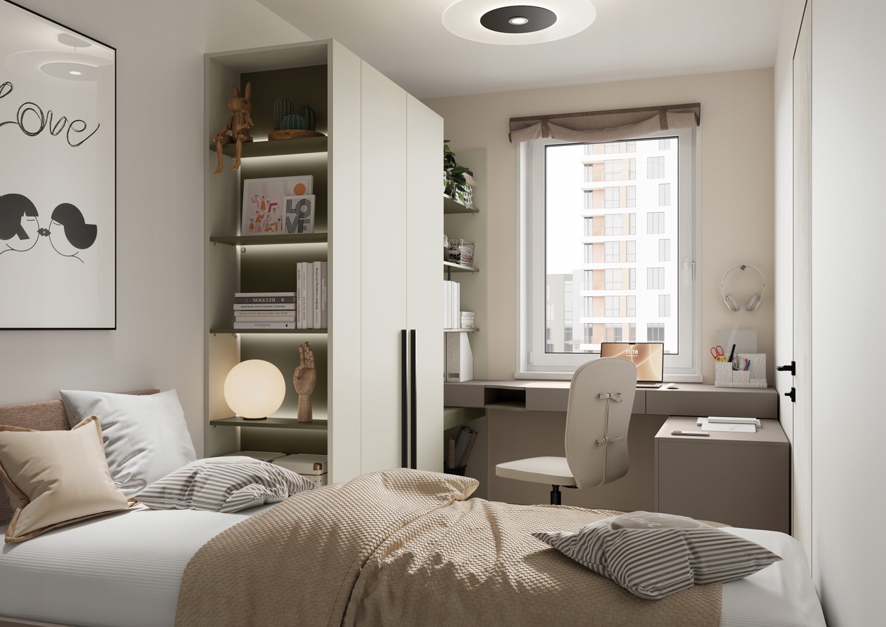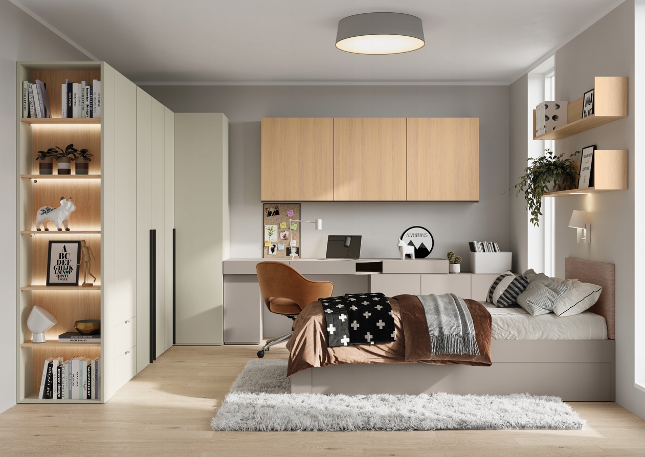 Завдяки цікавому поєднанню універсальних кольорів ця система буде працювати як у кімнатах дівчат та хлопців, створюючи гармонійні домовленості в скандинавському, мінімалістичному та молодіжному стилі.
