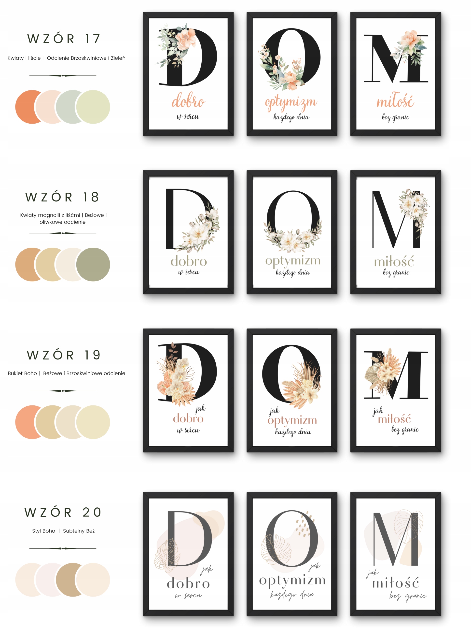 У вас є порожня стіна у вітальні, кухні чи передпокій для розвитку? А може, ви хочете прикрасити комод чи полицю? плакати з написом DOM - це хіт . У нашій пропозиції ви знайдете 24 унікальні візерунки - кожен набір - це гармонійні композиції квітів і листя, від тонких пастелів до виразних, глибоких кольорів. Завдяки цьому ви можете легко вибрати візерунок, який найкраще доповнить персонаж вашого інтер’єру.