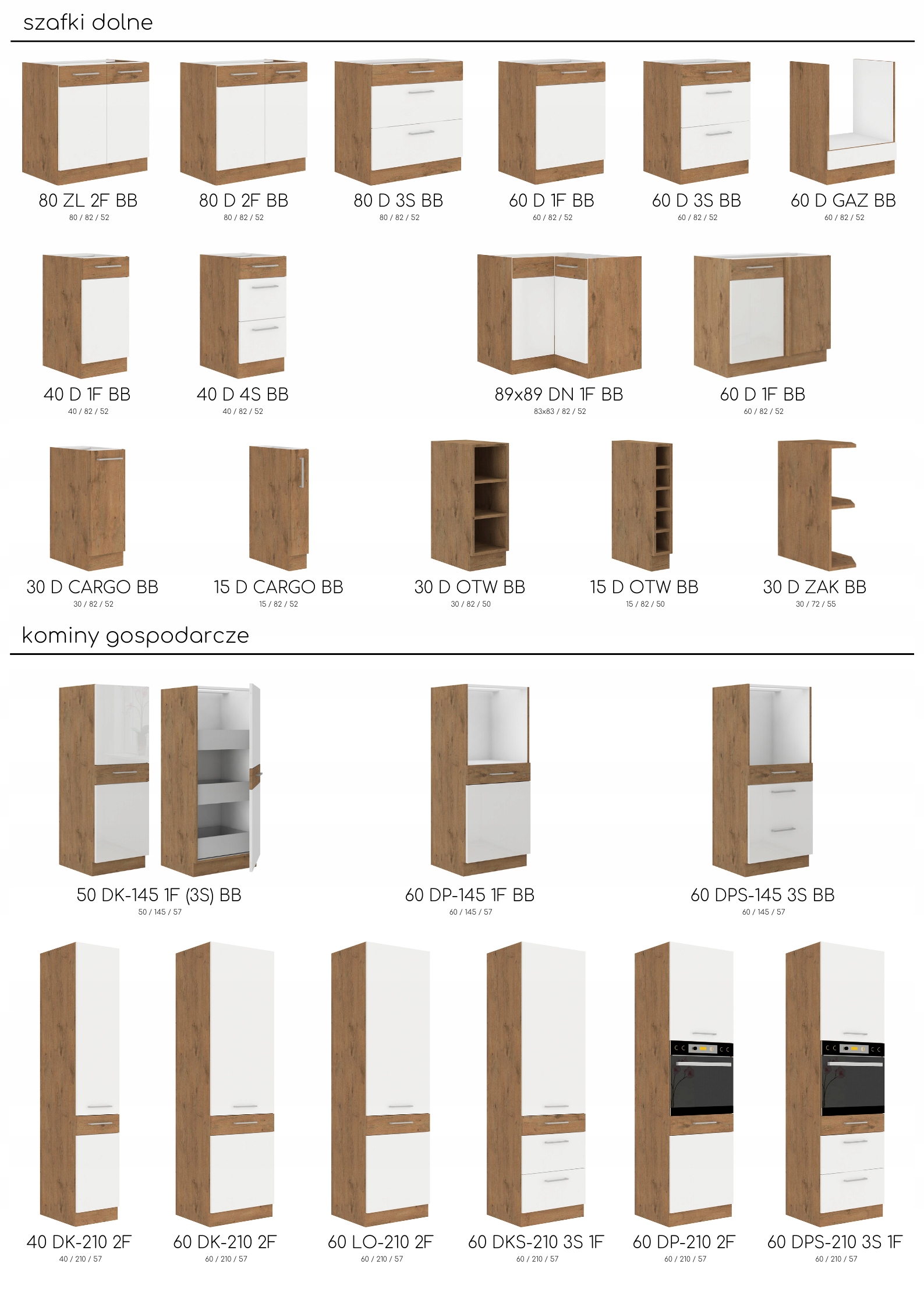 - шафа 60 D 3S BB - ширина 60 см / висота 82 см / глибина 52 см