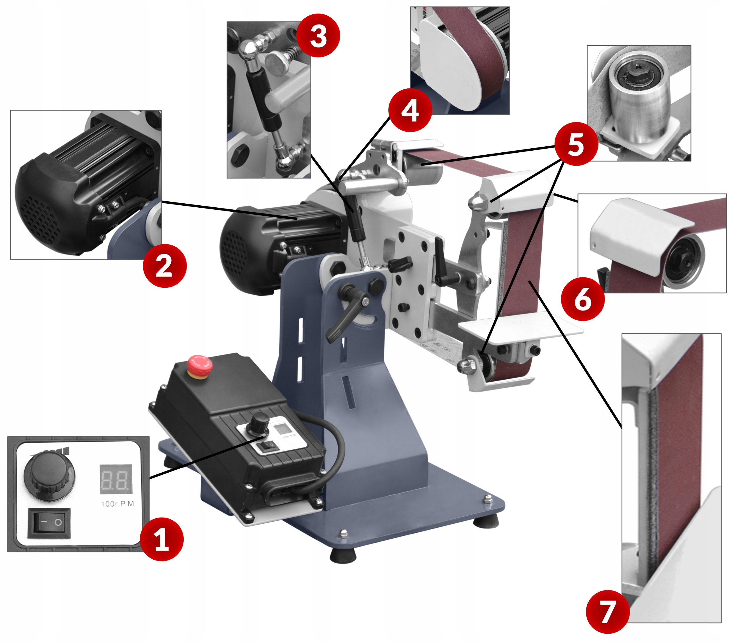 Універсальний стрічковий шліфувальний верстат із широким стандартним оснащенням і можливістю працювати вертикально та горизонтально.