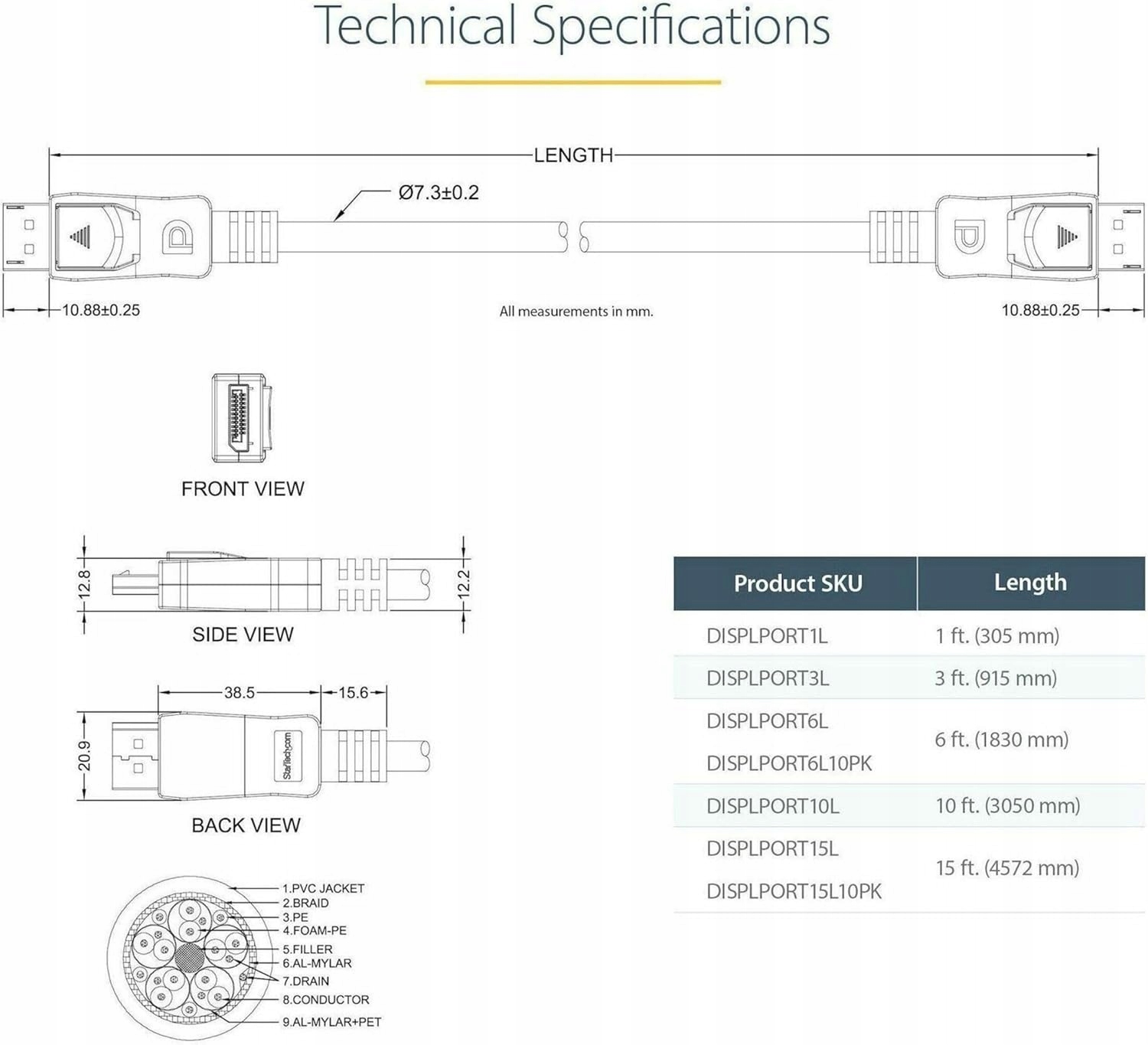 Суцільний кабельний дріт startech.com Displort6l displayport