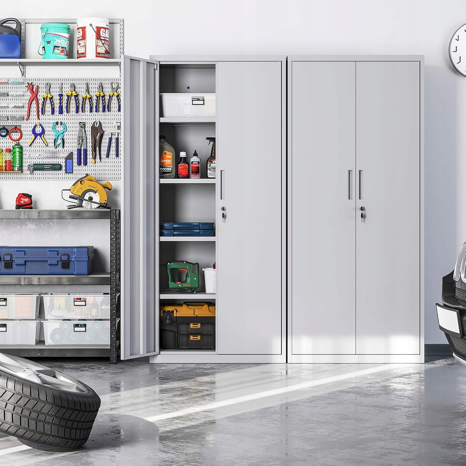 - Більше варіантів: Цей гардероб справді універсальний. Ви можете використовувати його як кабінет для документів в офісі, як шафа для зберігання в гаражі або тарілках та окулярах на кухні. Створіть додаткове місце для зберігання та впорядкування