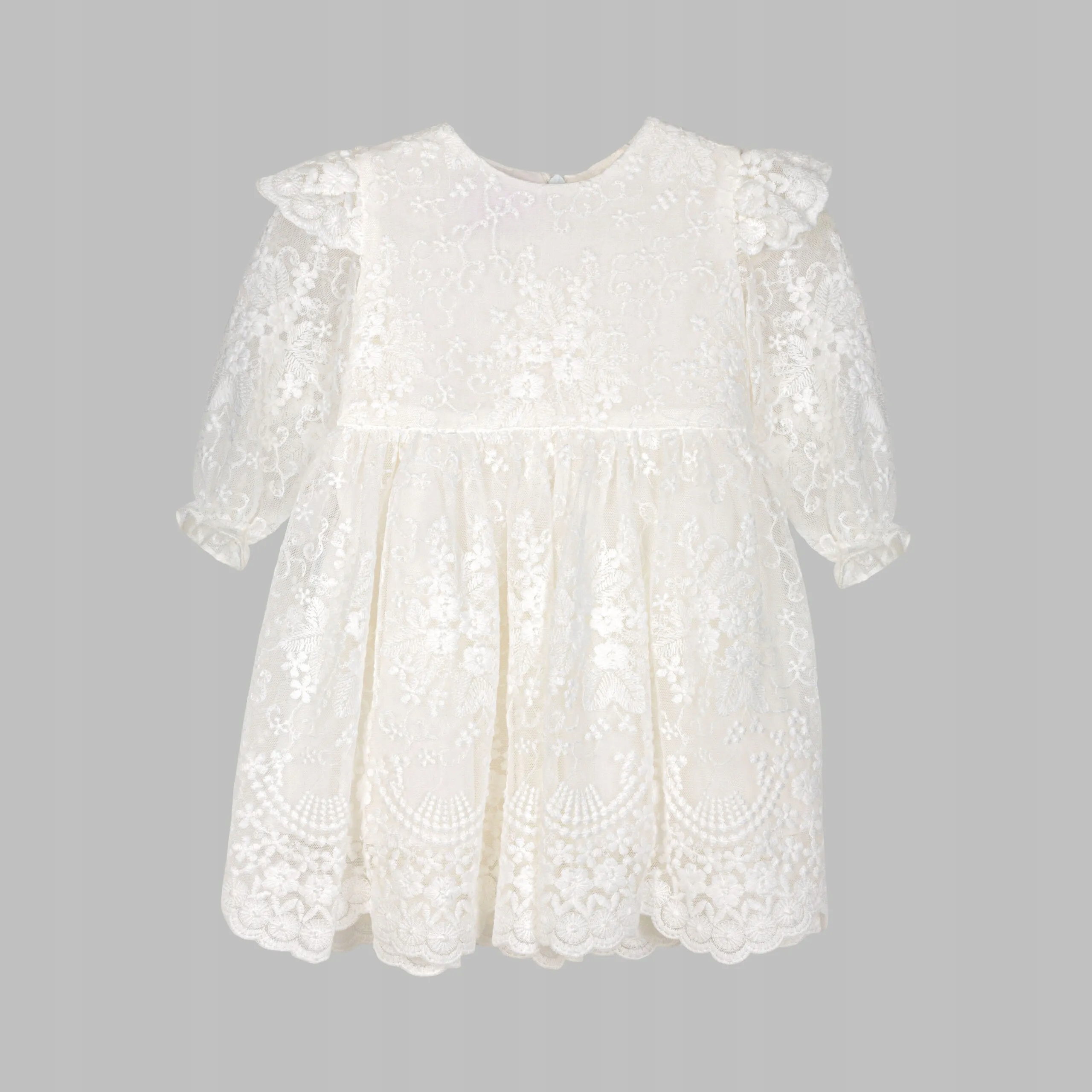 сукня, виготовлена з надзвичайно тонкої бавовняної вишивки на делікатному тюлі. Ціле вистелене валійною оболонкою для комфорту дитини. Довгі рукави залишаються прозорими до унікальної природи сукні, а невеликі складки на еластичній навколо зап'ястя дозволять вам адаптуватися до ніжної руки дитини. Покритий довгий повзунок зробить надягання плаття навіть найменший комфорт. Органи стрічки будуть відповідати сукні для кожної дитини. Спідниця, пришитий з усього кола - буде виглядати красиво на знімках. Кожен елемент виготовлений з благородного відтінку ECRU для підтримки послідовності. Всі відтінки суконь ECRU, доступні з нами, Болека та аксесуарами, ретельно підібрані нами для підтримки згуртованості стилізації ваших дітей у такий особливий день.