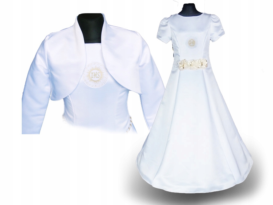 - Декорації - екрю або біла пояска з красивою квітковою аплікацією на талії. (Додано вільно, можна використовувати для іншої сукні або пришити за запитом), емблема IHS.