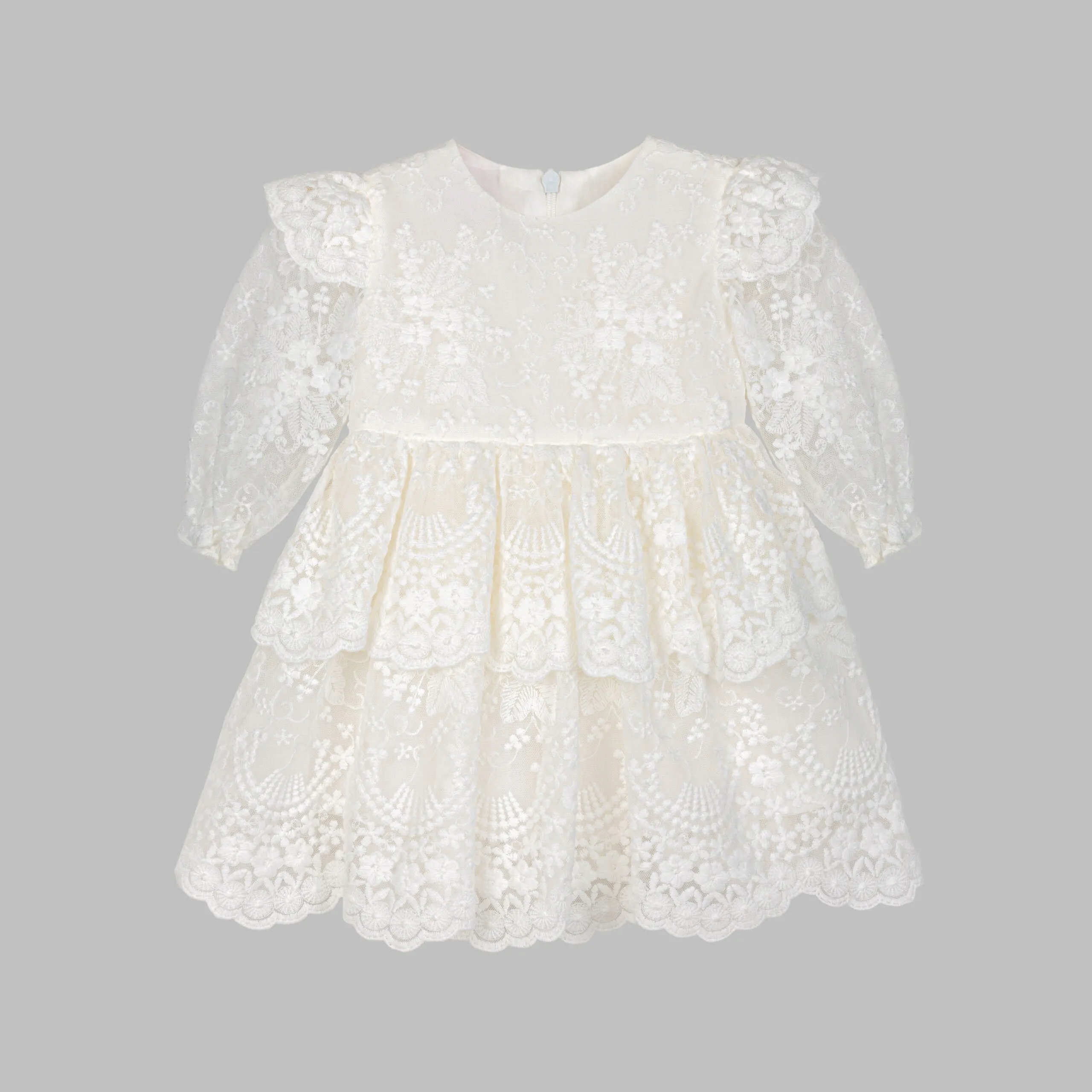 сукня, виготовлена з надзвичайно тонкої бавовняної вишивки на делікатному тюлі. Ціле вистелене валійною оболонкою для комфорту дитини. Довгі рукави залишаються прозорими, щоб зберегти унікальний характер сукні, а невеликі складки на еластичній навколо зап'ястя дозволять вам адаптуватися до ніжної руки дитини - додатково прикрашені крихітним крилом, воно підкреслить унікальність церемонії. Покритий довгий повзунок зробить надягання плаття навіть найменший комфорт. Органи стрічки будуть відповідати сукні для кожної дитини. Спідниця складається з двох надмірностей, пришитих з усього кола - вони будуть красиво виглядати на знімках. Кожен елемент виготовлений з благородного відтінку ECRU для підтримки послідовності. Всі відтінки суконь ECRU, доступні з нами, Болека та аксесуарами, ретельно підібрані нами для підтримки згуртованості стилізації ваших дітей у такий особливий день.