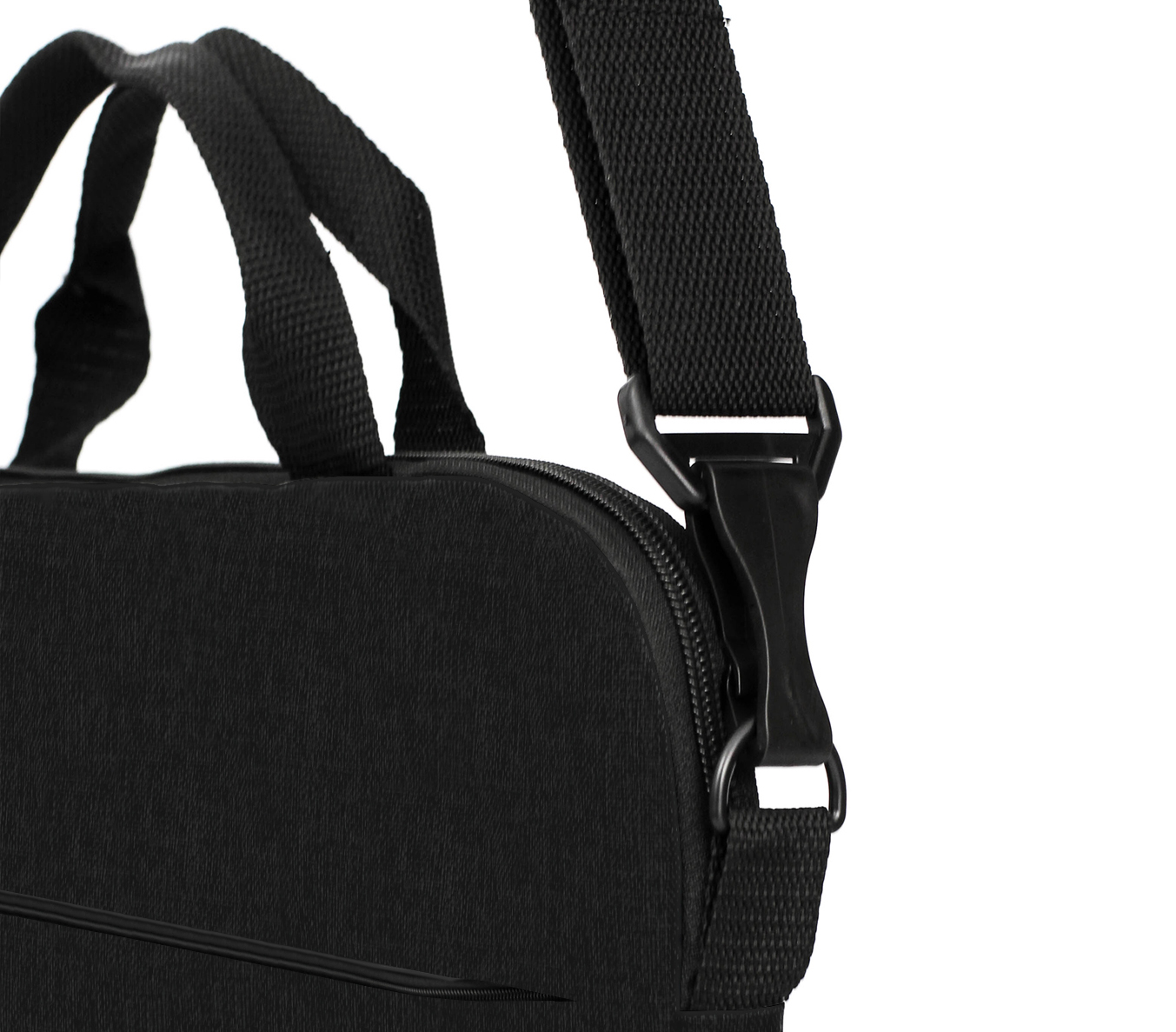 Зовнішній матеріал сумки покритий спеціальною губкою, завдяки якій ноутбук повинен бути в безпеці, навіть якщо сумка впаде. Вам не потрібно хвилюватися про те, що ви пошкодите комп’ютер під час удару по сумці.