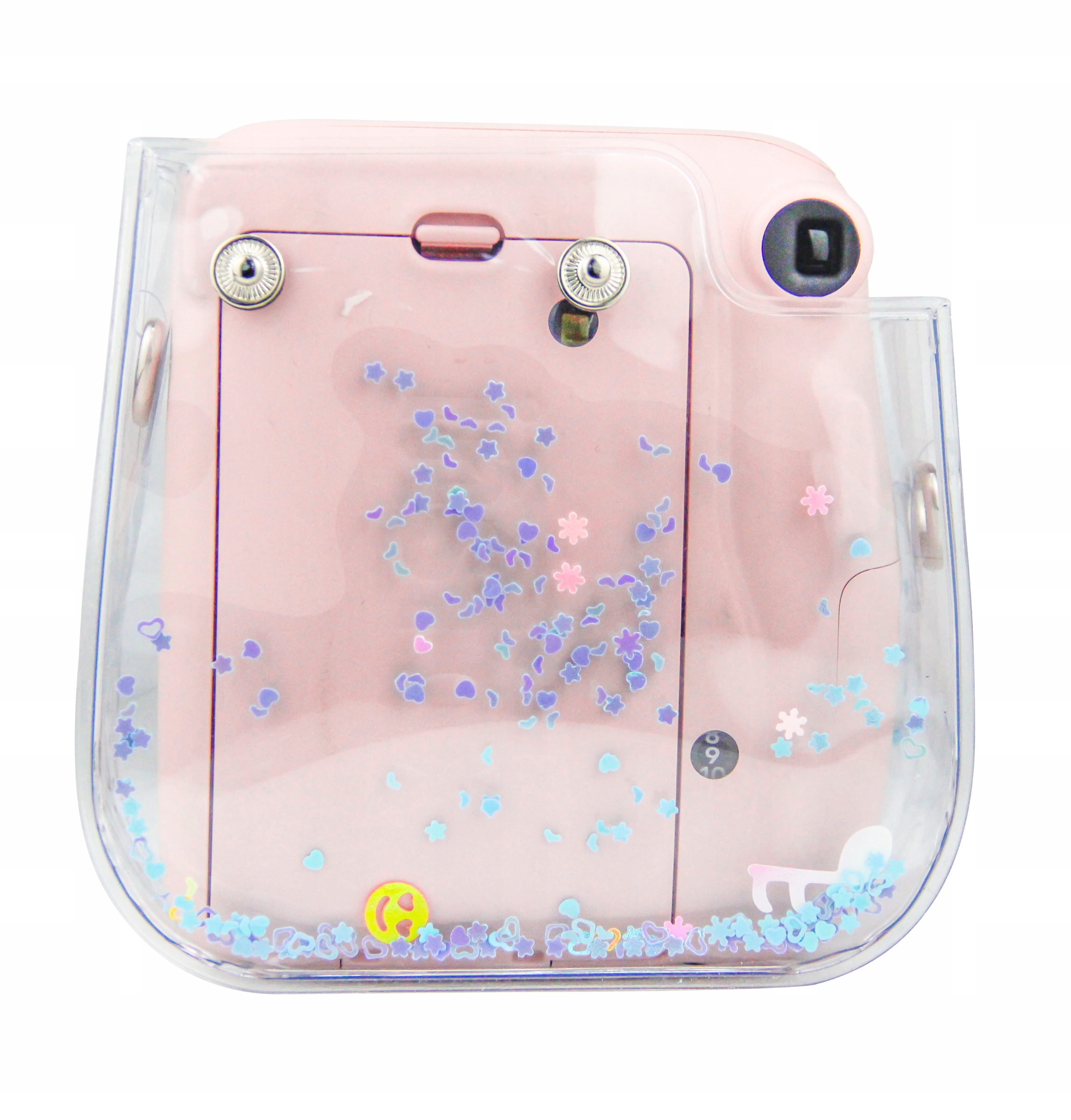 Корпус наповнений мерехтливими блискітками різної форми.