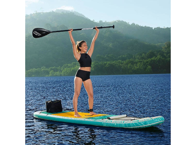SUP Hydro Force Panorama 11.2 65363 (340 x 89 x 15 см) 2022 - це дошка SUP з чудовими властивостями плавання, особливо для рекреаційної форми діяльності на воді. Легкий і досить довгий, щоб забезпечити комфортне та стабільне плавання. Ідеал не тільки для дослідників, які, плаваючи, хочуть відкрити та милуватися морським дном завдяки спеціальному вікні, вбудованому в колоду цієї дошки.