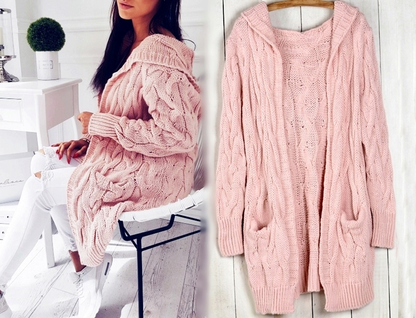 Унікальний светр/пальто для холодних днів, з довгими рукавами та капюшоном, не застібається. Дві кишені з боків.