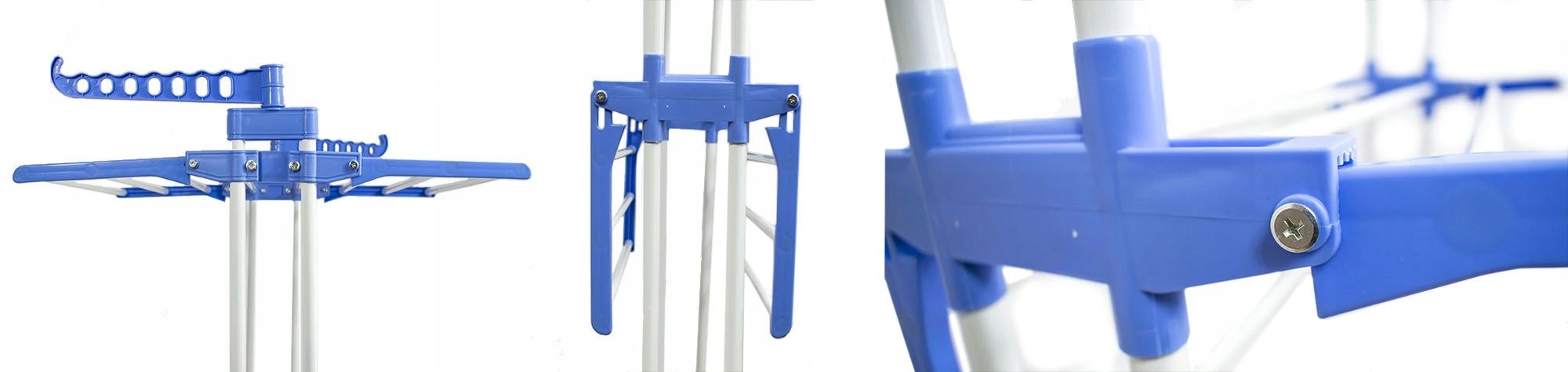 Вертикальна 3-рівнева окрема сушарка для білизни. Завдяки коліщаткам він дуже мобільний, ми можемо легко і швидко переносити його з одного місця на інше. Крім того, колеса мають блокування, тож ми можемо бути впевнені, що сушильна машина буде стійкою та не рухатиметься під час пориву вітру чи протягу.