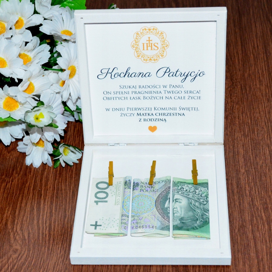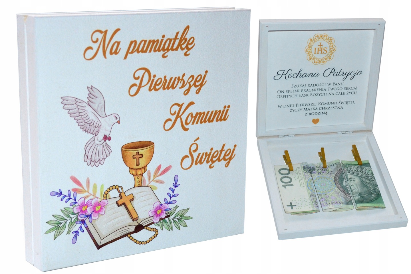 Сувенір Перше Святе Причастя біла скринька для грошей подарунок