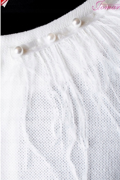 Светр білий з пір'ям, елегантний светр, в'язка болеро, розм. 146