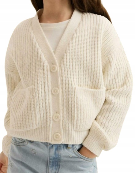 Светр кардиган білі довгі рукави для кнопок товсте плетіння зарезервовано 158