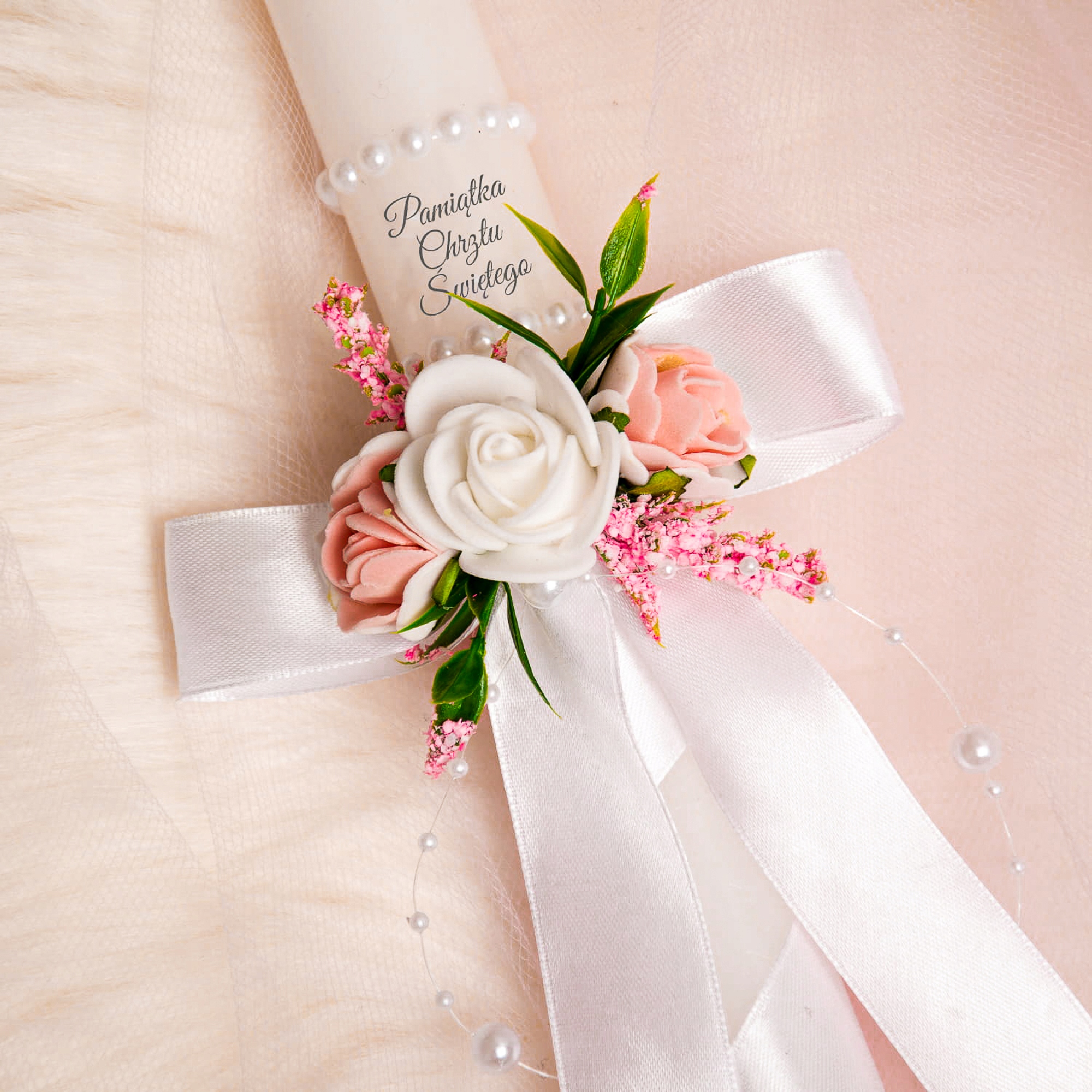 Красива свічка для хрещення, рука -збоку. Готується з найбільшим почуттям стилю. Зроблено з найвищих компонентів якості. Свічка, прикрашена сучасним стилем. Делікатні кольори ідеальні як сувенір хрещення як для дівчини, так і для хлопчика. Напис "сувенір хрещення" додає чарівності.
