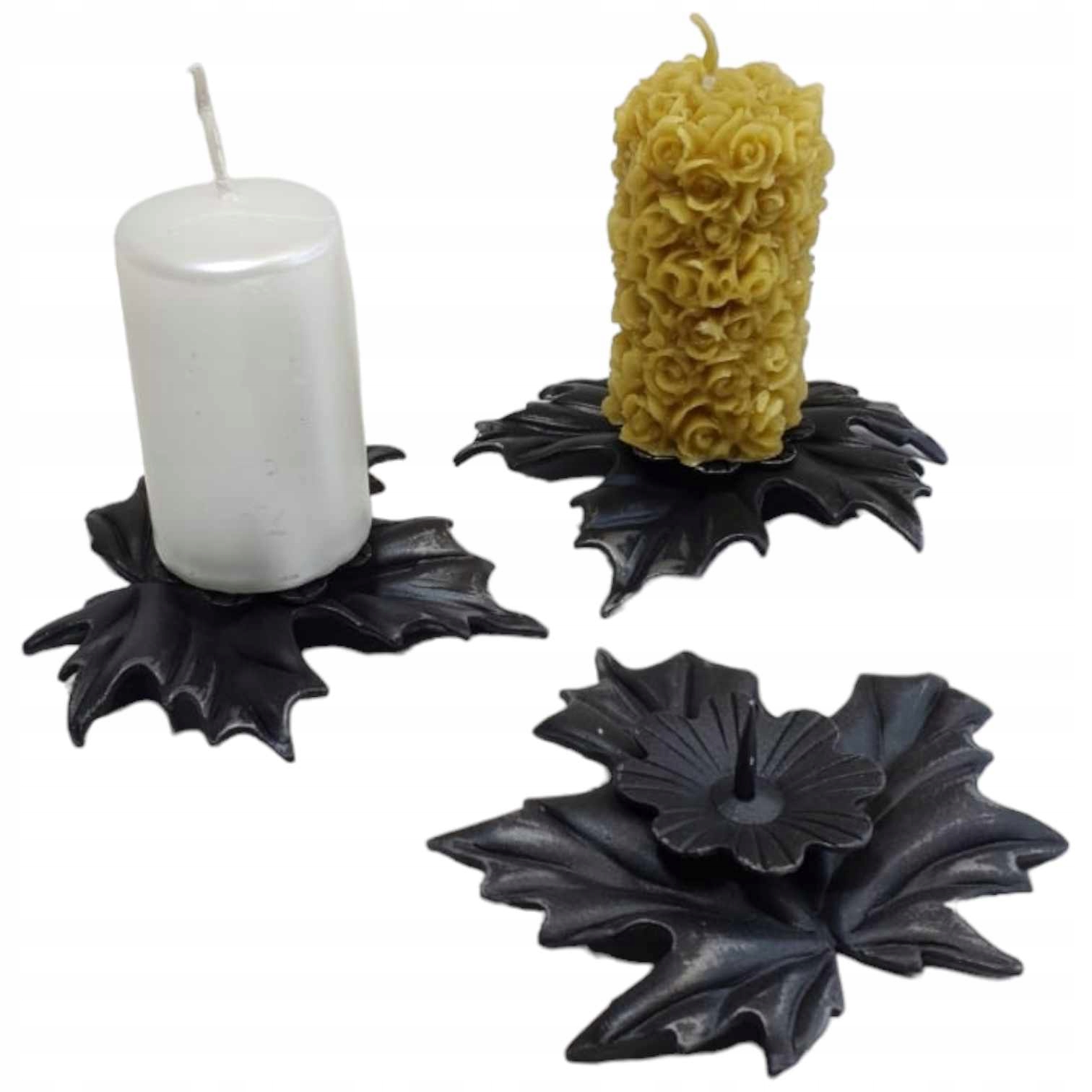 Унікальний сталевий свічник ручної кування — модель кленового листа — чорний