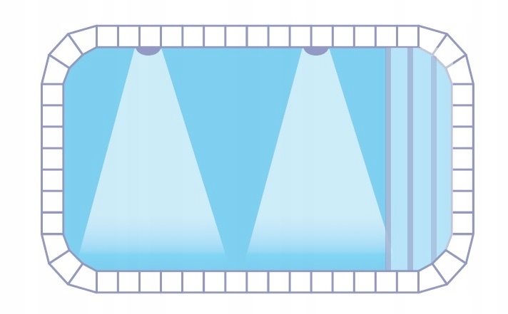 Покращена оптика та висока ефективність світлового потоку забезпечують ідеальне освітлення басейну. Завдяки використаній технології розподіл світла в басейні рівномірний.