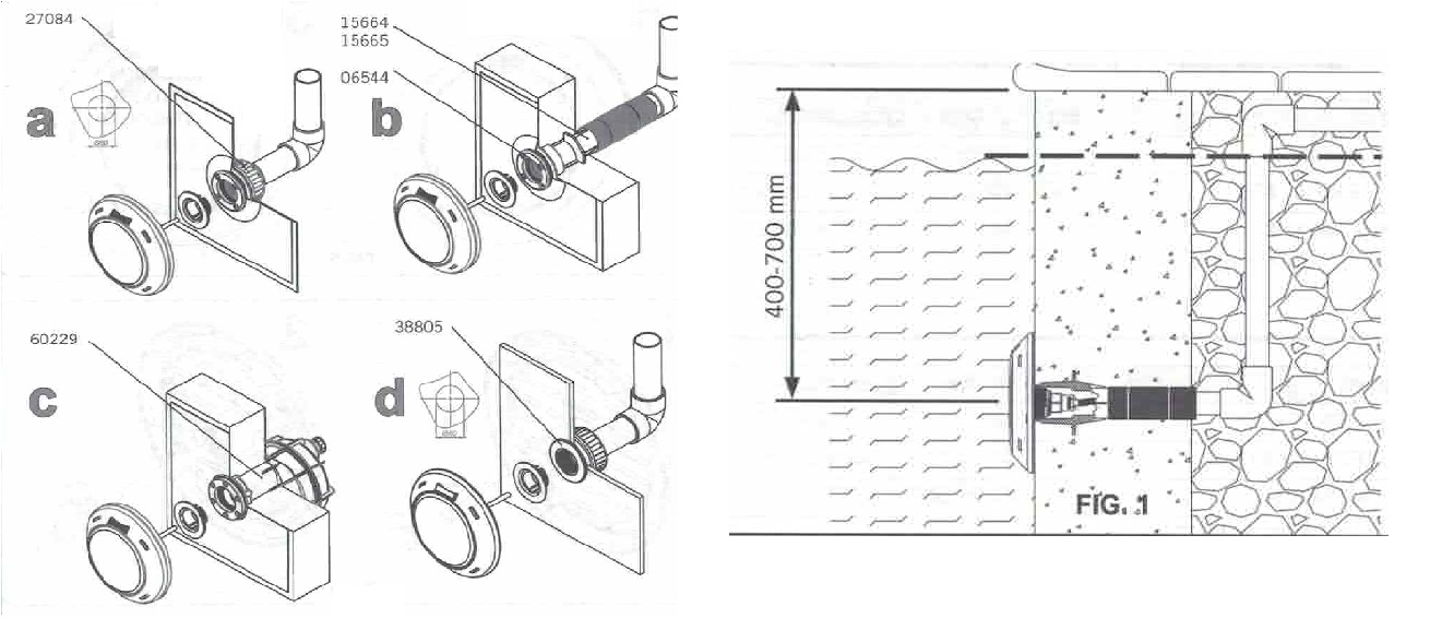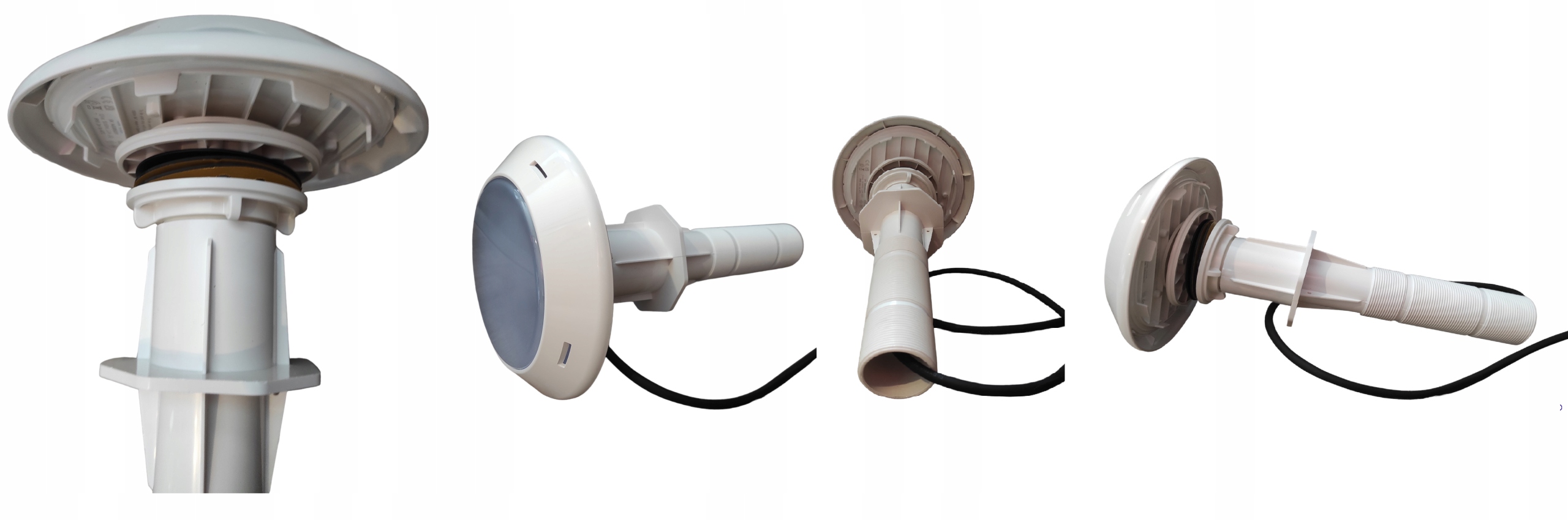 Встановлення лампи в трубу, призначену для встановлення насадок для басейну 15658. Така установка з використанням насадки 35418 або іншої стандартної припливної насадки (наприклад, 00334) гарантує герметичність басейн.