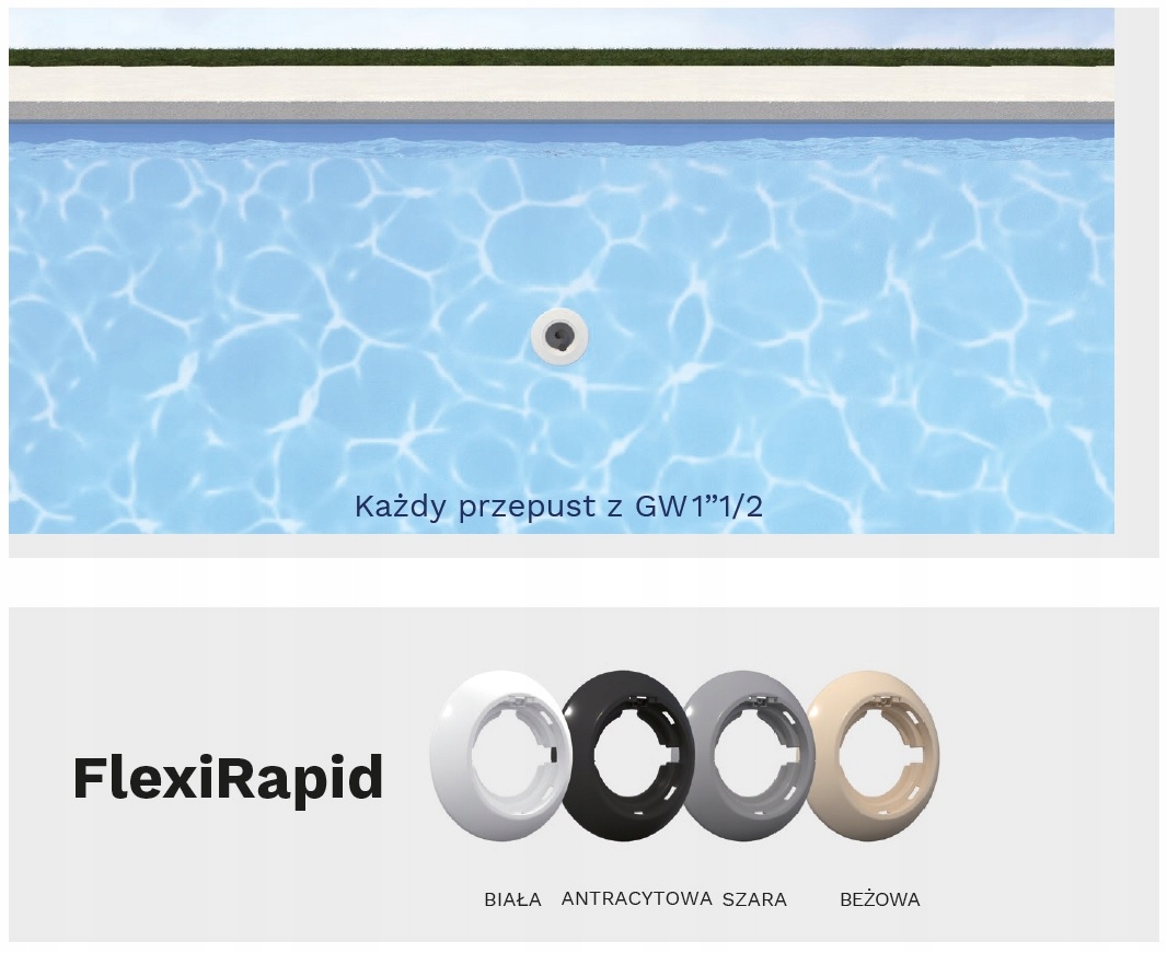 Нова серія ламп FlexiRapid характеризується чудовою адаптованістю до всіх новозбудованих та існуючих фольгованих, збірних та бетонних басейнів. Проектори можна монтувати в стіні.
