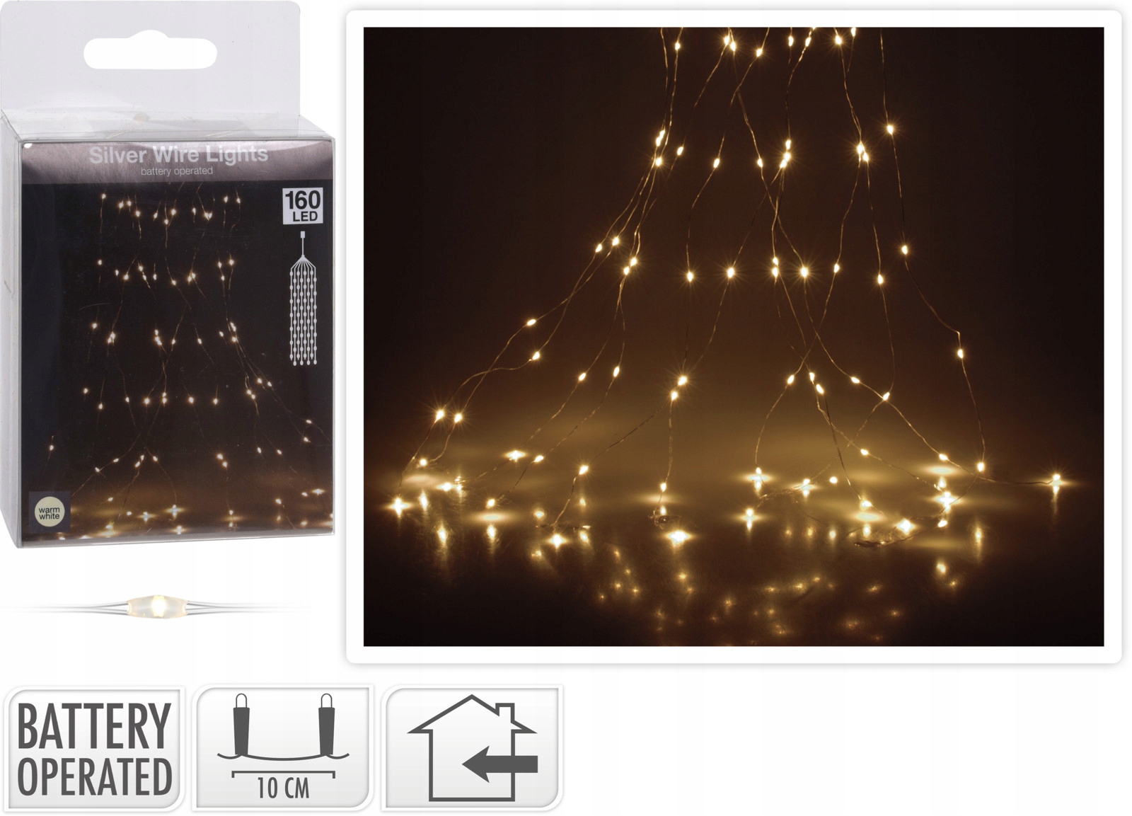 МІКРО-світлодіодні лампи ТЕПЛОГО БІЛОГО кольору, довжиною 8X190СМ, вбудовані в срібний дріт з функцією спалаху.