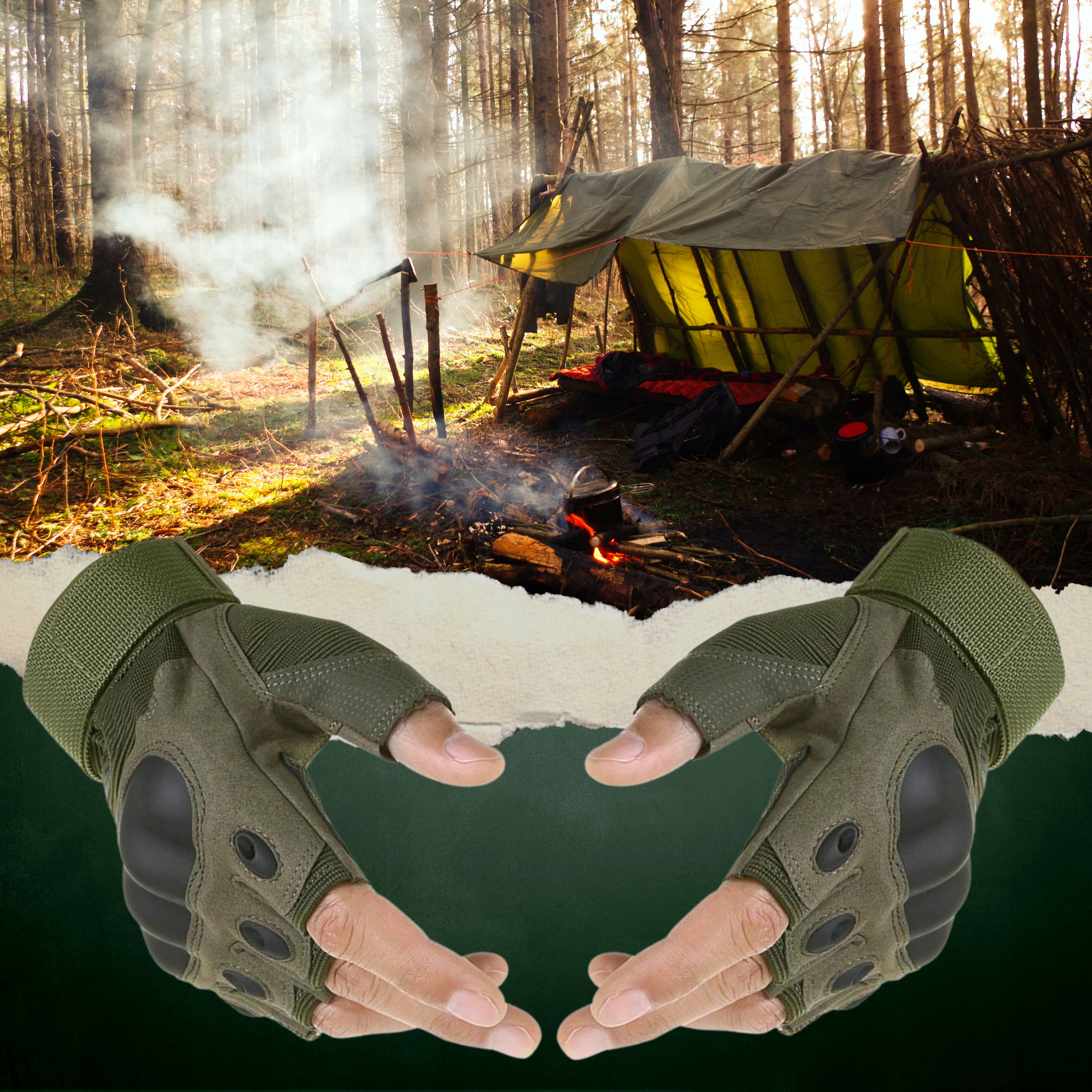 Світло -безтурботні захисні рукавички без пальців. Захист ручних кубиків Зелений бій XL