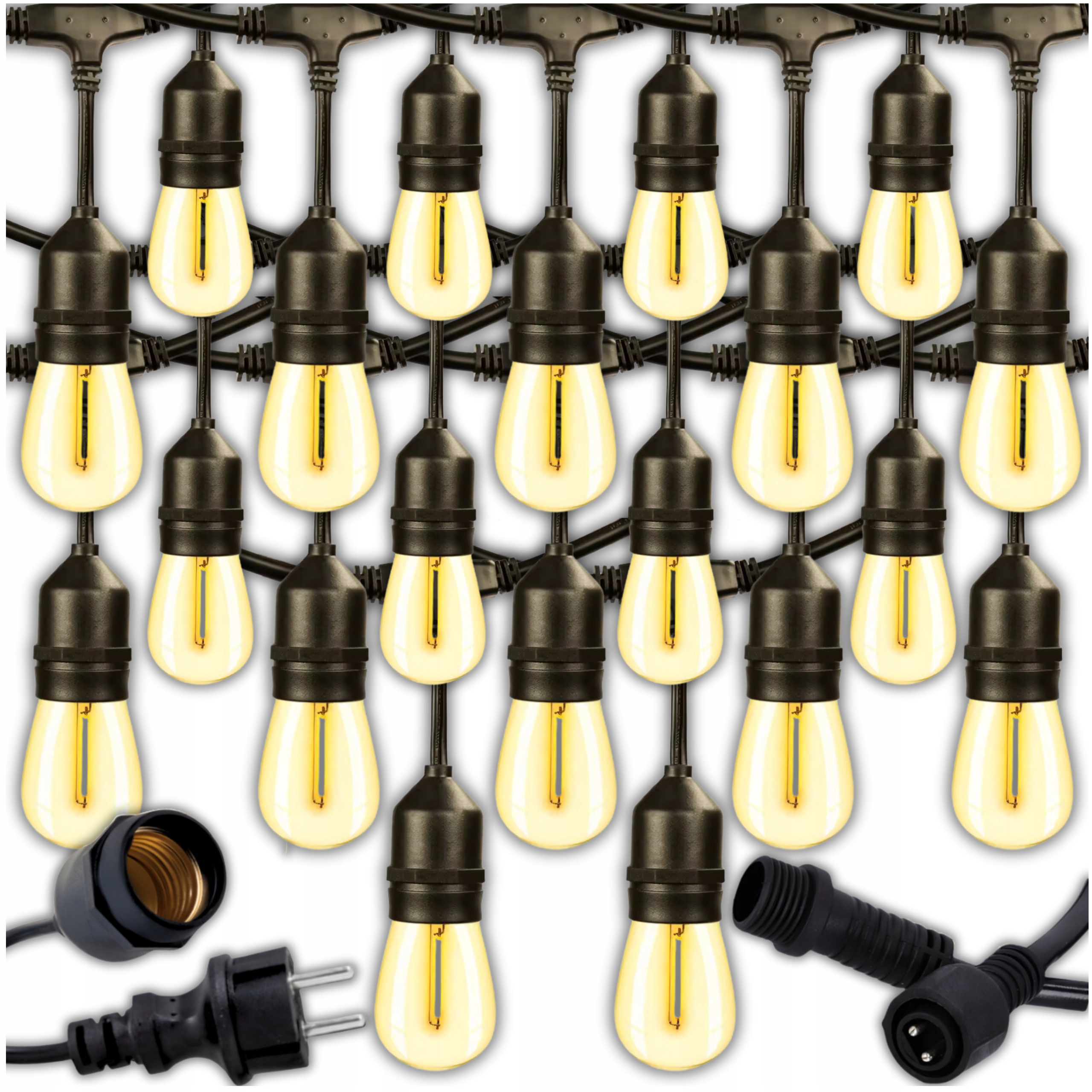Завдяки стандартним e27 розетків , заміна лампочок у гірлянді швидко і легко. Це не вимагає жодних інструментів чи спеціалізованих знань - лише мить замінити лампочку.