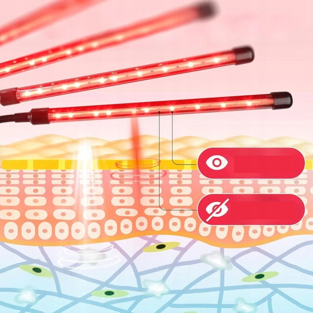 Наукове вдосконалення, що забезпечує ще глибший вплив червоного світла. Інфрачервоне світло з довжиною хвилі 850 нм проникає особливо глибоко, забезпечуючи більш інтенсивний ефект та освіжаючий досвід. Слід пам’ятати, що це не класична інфрачервона лампа - під час використання не відчувається прозорого тепла.