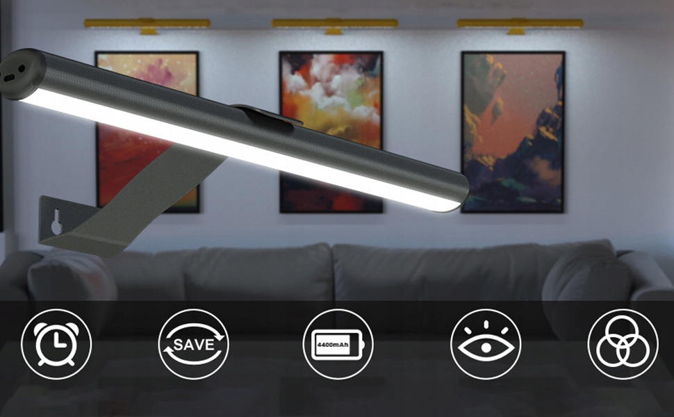 - 💡 -побудований батарея 4400 мАг, довший робочий час. Для зарядки лампи використовуйте включений кабель зарядки. Світлова стрічка прикріплена до стійки з магнітом, тому її можна легко зняти, щоб зарядитись. Налаштування таймера дозволяє автоматично вимикати освітлення через 15/30/60 хвилин. Збережіть більше батарей. кнопка дотику. Кнопка дистанційного керування або сенсорна кнопка. Натисніть пульт дистанційного керування, щоб змінити колір освітлення, відрегулюйте яскравість або встановіть автоматичний таймер комутації. Ви також можете коротко натиснути кнопку на ліхтарику, щоб змінити колір або тривалий час натиснути кнопку, щоб регулювати яскравість.