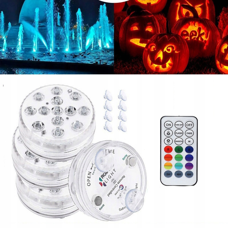 пульт дистанційного керування: за допомогою дистанційного керування RF лампа може бути стабільною під водою. Відстань управління повітря може досягати 30 м і 5 м у воді. Оснащений 16 кольорами, 3 режимами зсуву, регульованою яскравістю та таймером.