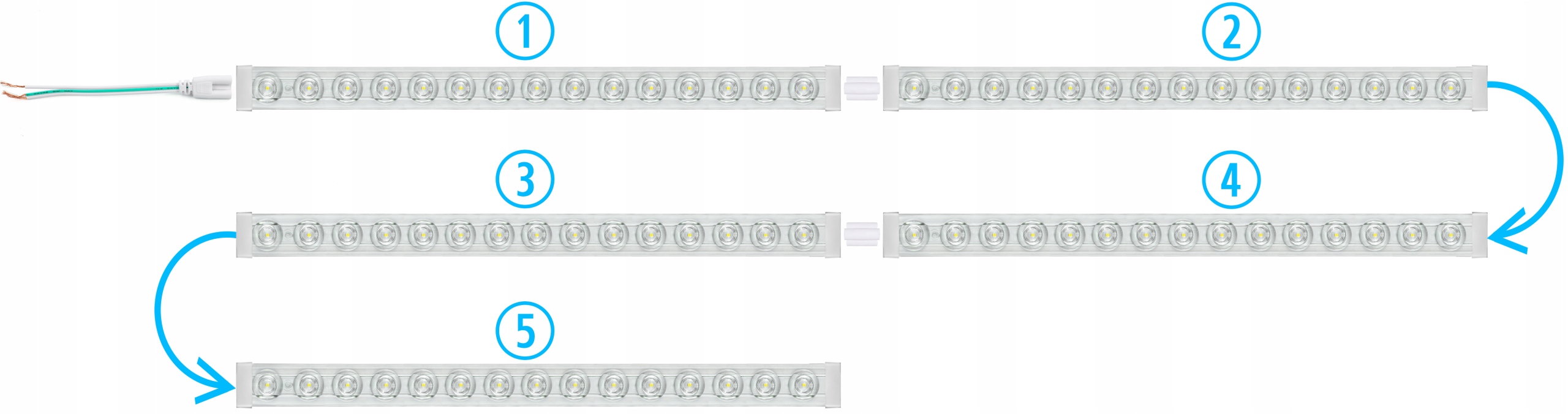 Кожна лампа має можливість підключення джерела живлення до обох кінців . У наборі для кожної лампи ви отримаєте роз'єм , який дозволить підключити наступні світильники до однієї лінії до 5 штук.
