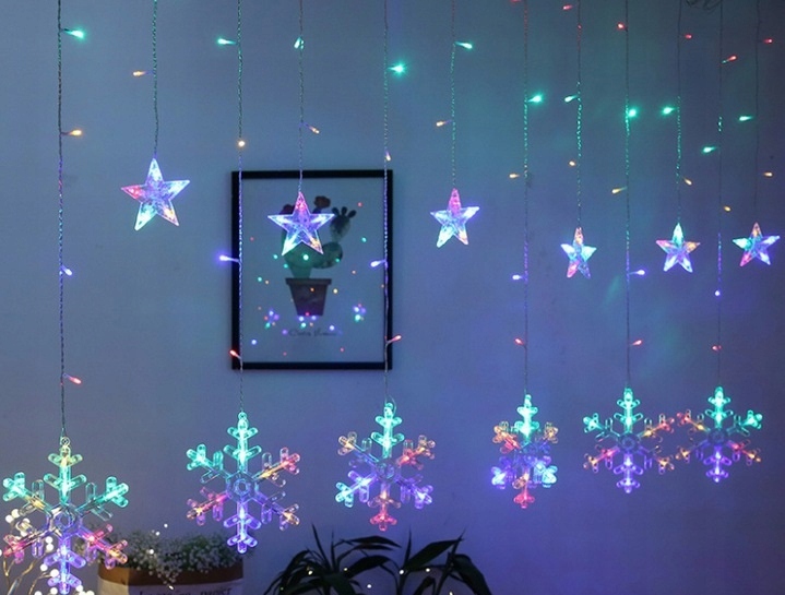Світлова завіса складається з 6 великих сніжинок, 6 маленьких світлодіодних зірок, розташованих на 2 довжини