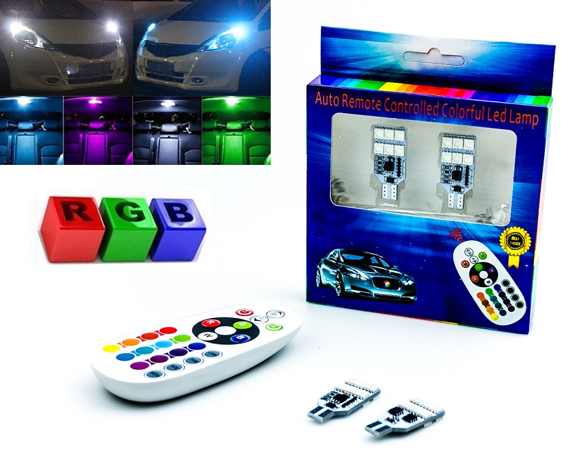 СВІТЛОДІОДНІ ЛАМПОЧКИ RGB T10 W5W СТОЯНКОВІ ІНТЕР'ЄРИ + ПУЛЬТ ДИСТАНЦІЙНОГО КЕРУВАННЯ