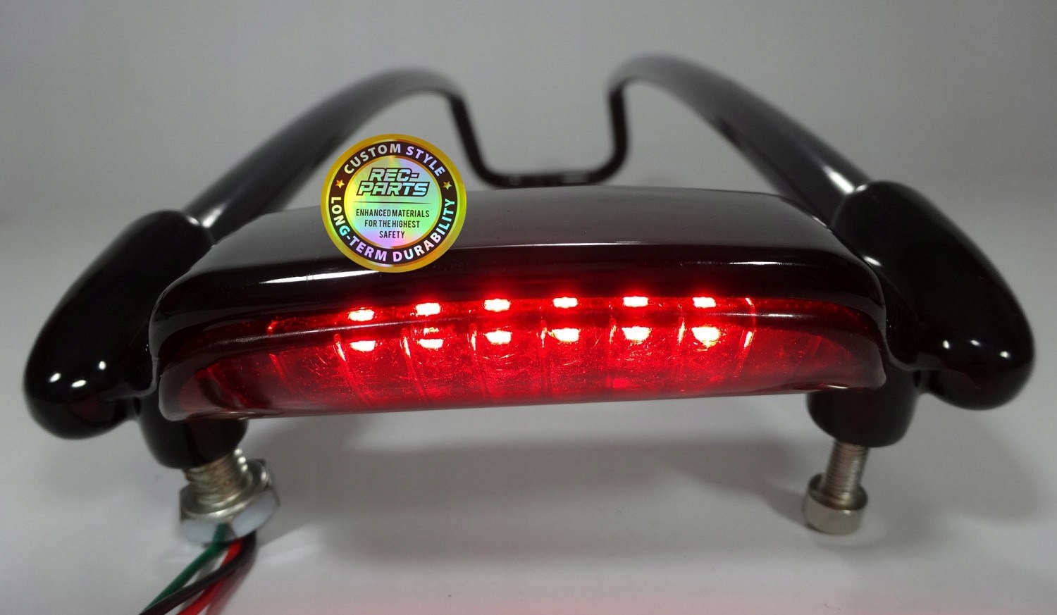 - У комплект входить: 2 чорні стійки (рейлінги) для бічних кофрів, світлодіодні ліхтарі (2 режими освітлення: задні фари, стоп-сигнали), кабелі, набір гвинтів