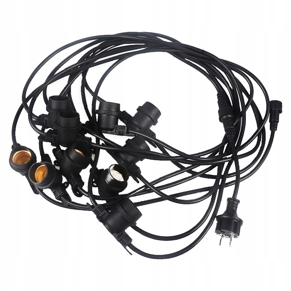 Світлодіодний садовий гірлянд 10м E27 - це гнучкий кабель з довжиною 10 метрів, оснащений 20 розетками для лампочок з ниткою E27. Продукт призначений для створення декоративного освітлення у внутрішніх та зовнішніх просторах. Стандартна нитка E27 дозволяє встановити різні лампочки, доступні на ринку, що дозволяє регулювати ефект освітлення під вашим індивідуальним потребам.