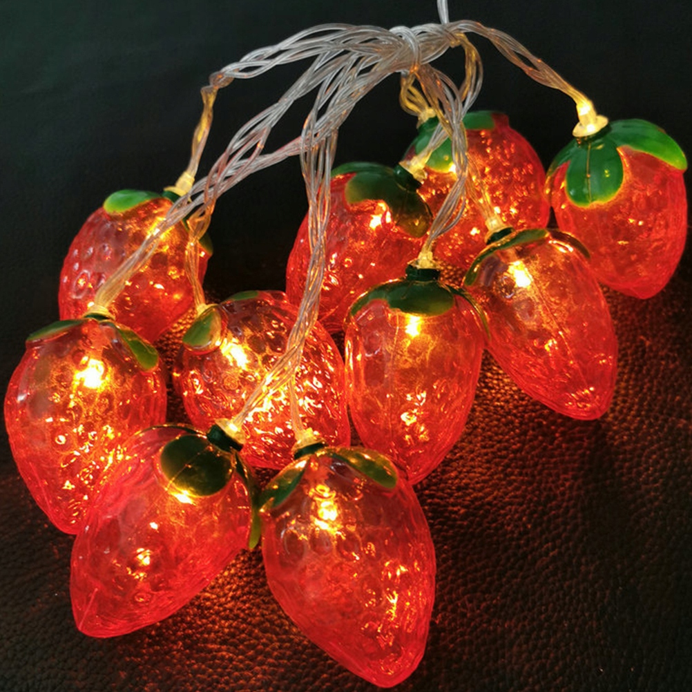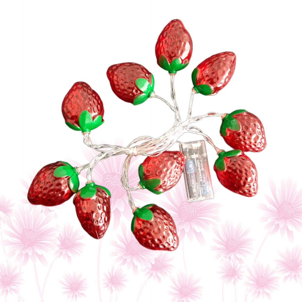 ✅Цей елемент являє собою низку з 10 світлодіодних ліхтарів у формі полуниці. Вони працюють від батарейок, що забезпечує економію електроенергії та низьке енергоспоживання протягом тривалого часу. Зазвичай використовується для вечірок, сцени, весілля, спальні, нічних сцен та інших прикрас, створюючи теплу та романтичну атмосферу.
