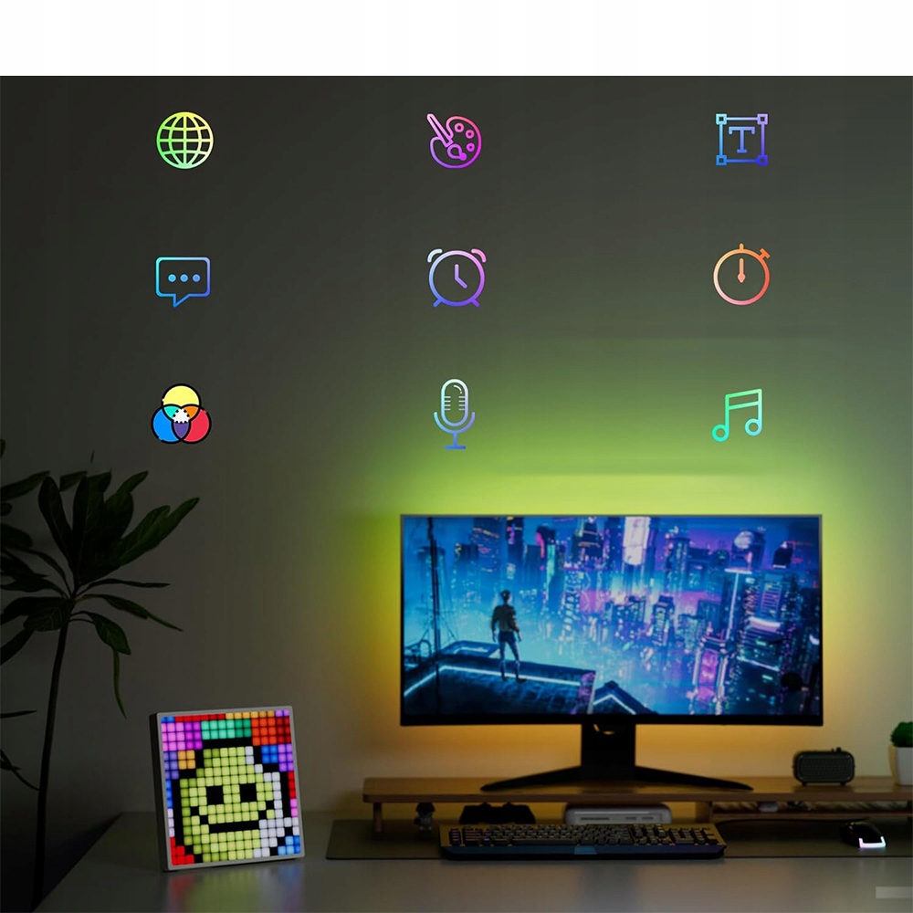 Світлодіодний дисплей PIXEL ART ДЛЯ ІГРОВОЇ КІМНАТИ 16X16 RGB ГОДИННИК ЦИФРОВА СВІТЛОДІОДНА ПАНЕЛЬ