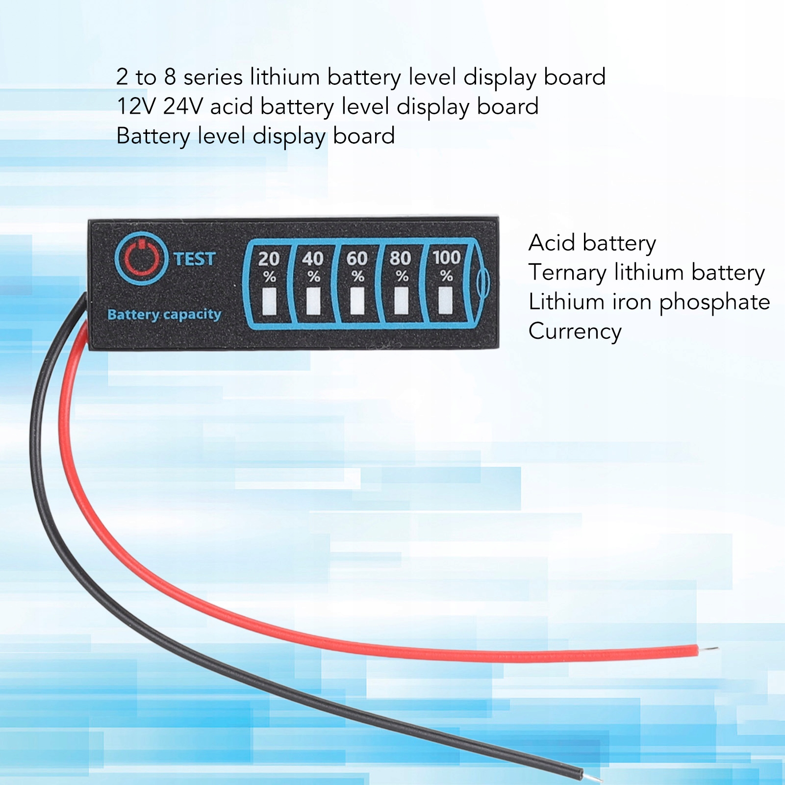 5. Універсальне використання: світлодіодний індикатор батареї підходить для різних батарей, таких як кислотні, літієві та літій-залізо-фосфатні. Компактний дизайн і легке встановлення роблять його ідеальним для використання в різноманітних пристроях і системах.