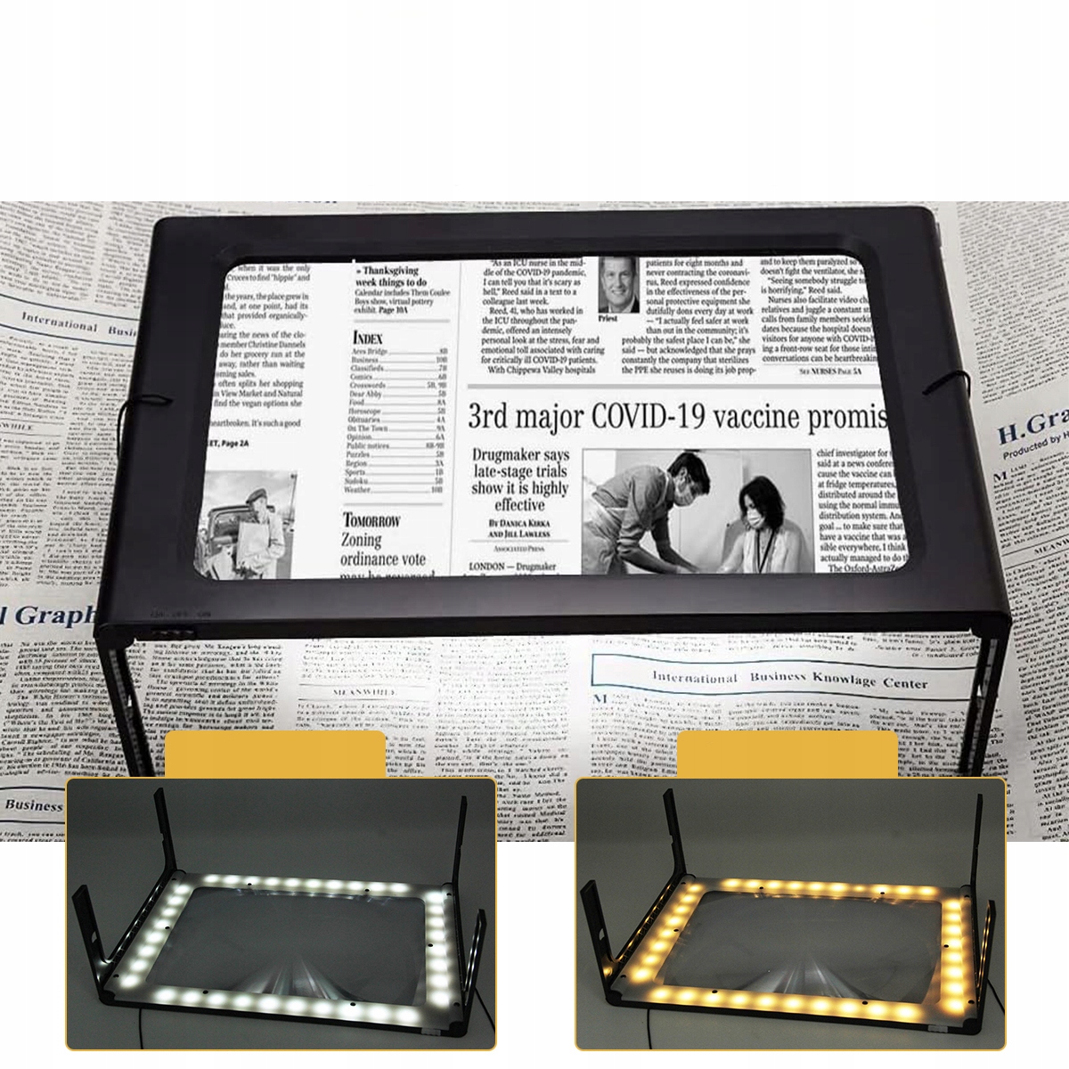 Світлодіодний журнал збільшення скляного скла 3x великий освітлений екран