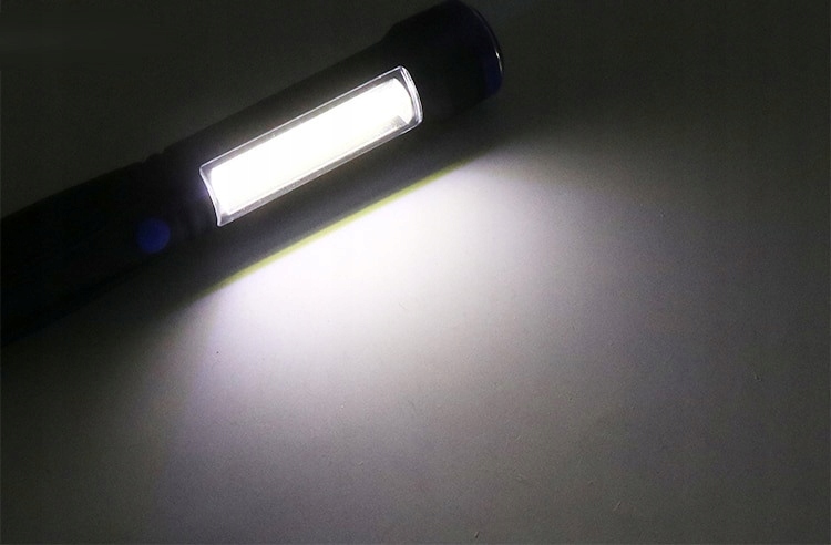 Ліхтарик виготовлений за технологією COB LED, що характеризується широким кутом освітлення та плавністю світлового потоку. Лампа оснащена магнітом в основі, що дозволяє кріпити лампу на металеві матеріали, і практичним гачком.