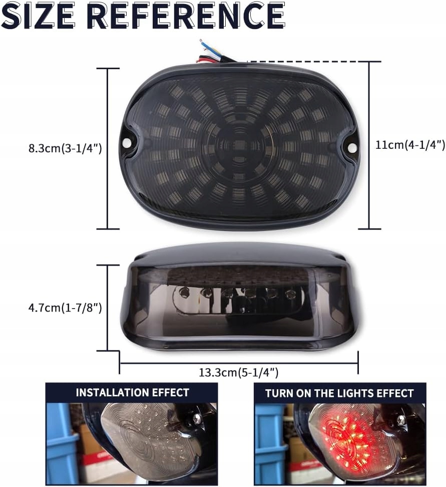 - Привабливі: Нові стильні, задимлені чорні лінзи, набагато більш плоский профіль, ніж серійні світильники, покращує зовнішній вигляд заднього світла мотоцикла та привертає багато уваги інших